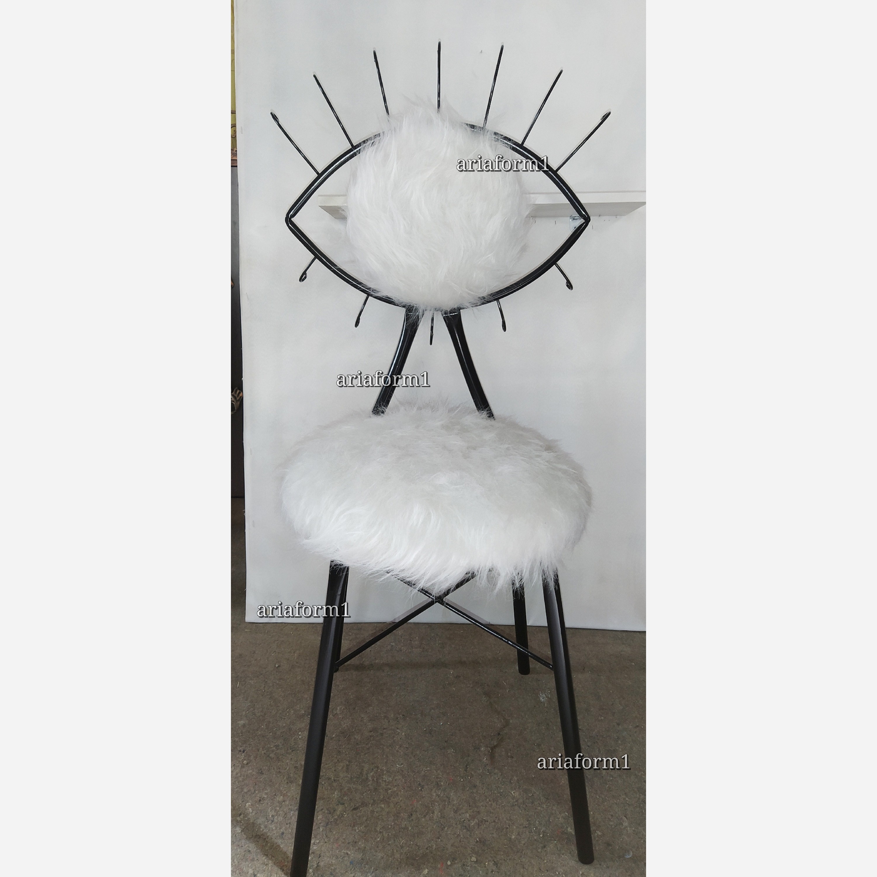 صندلی مدل چشم اریافرم فلزی مقاوم شیک خاص ومتفاوت،نونه ای زیبا و جذاب برای عکاسی،آرایشگاه،مراسمات ارتفاع نشیمن تا زمین45سانت ،ارتفاع صندلی 94سانت قابل سفارش در ابعادورنگ دلخواه شما،تحمل وزن تا180 کیلوگرم،ارسال از زمان سفارش به مدت هفت روز کاری،ارتباط مستقیم باتولیدکننده09125310554