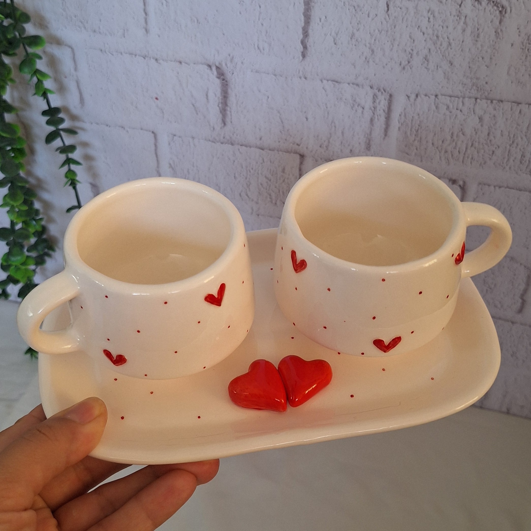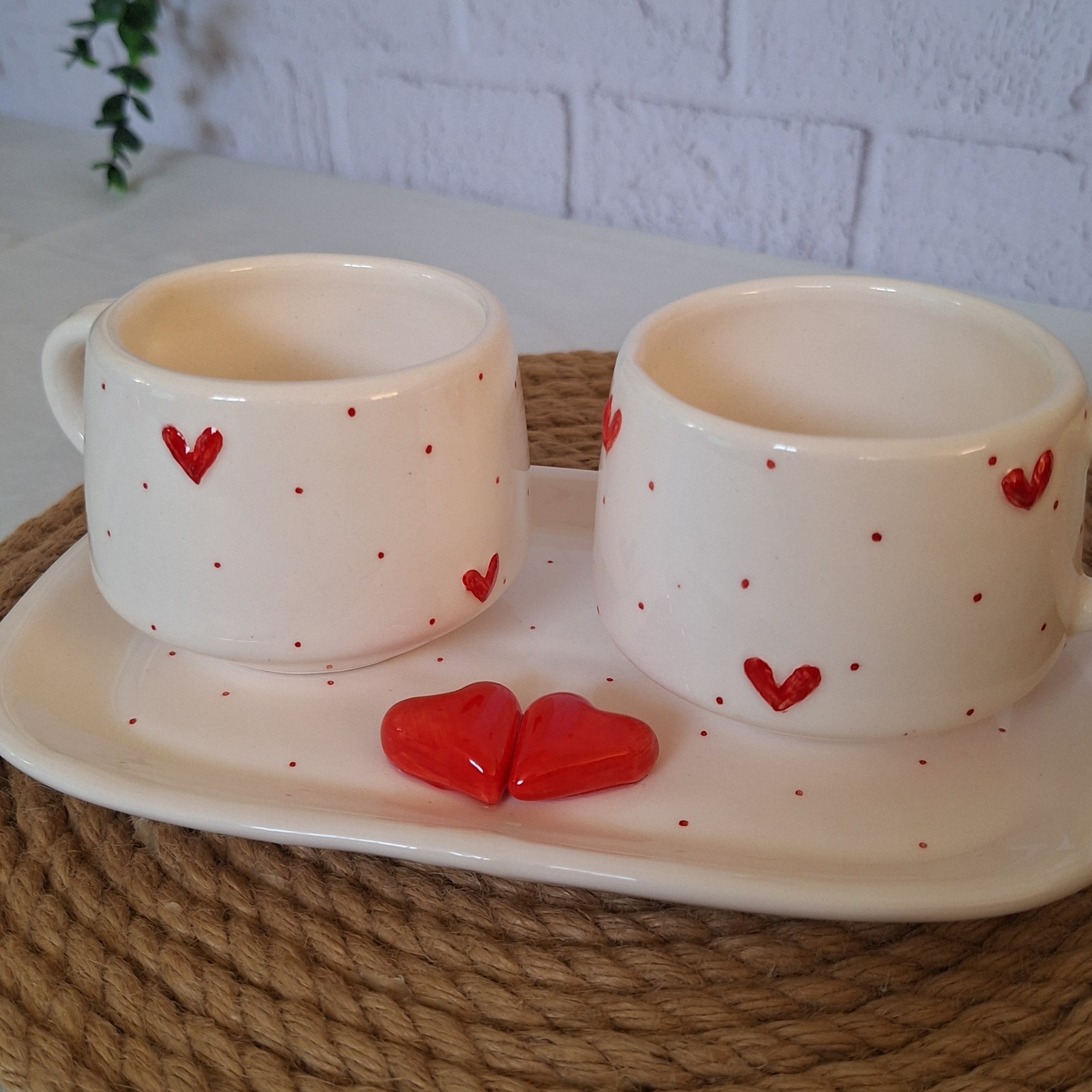 چایخوری دونفره سرامیکی سینی قهوه خوری طرح قلب مبلمونسرا مدل 290680