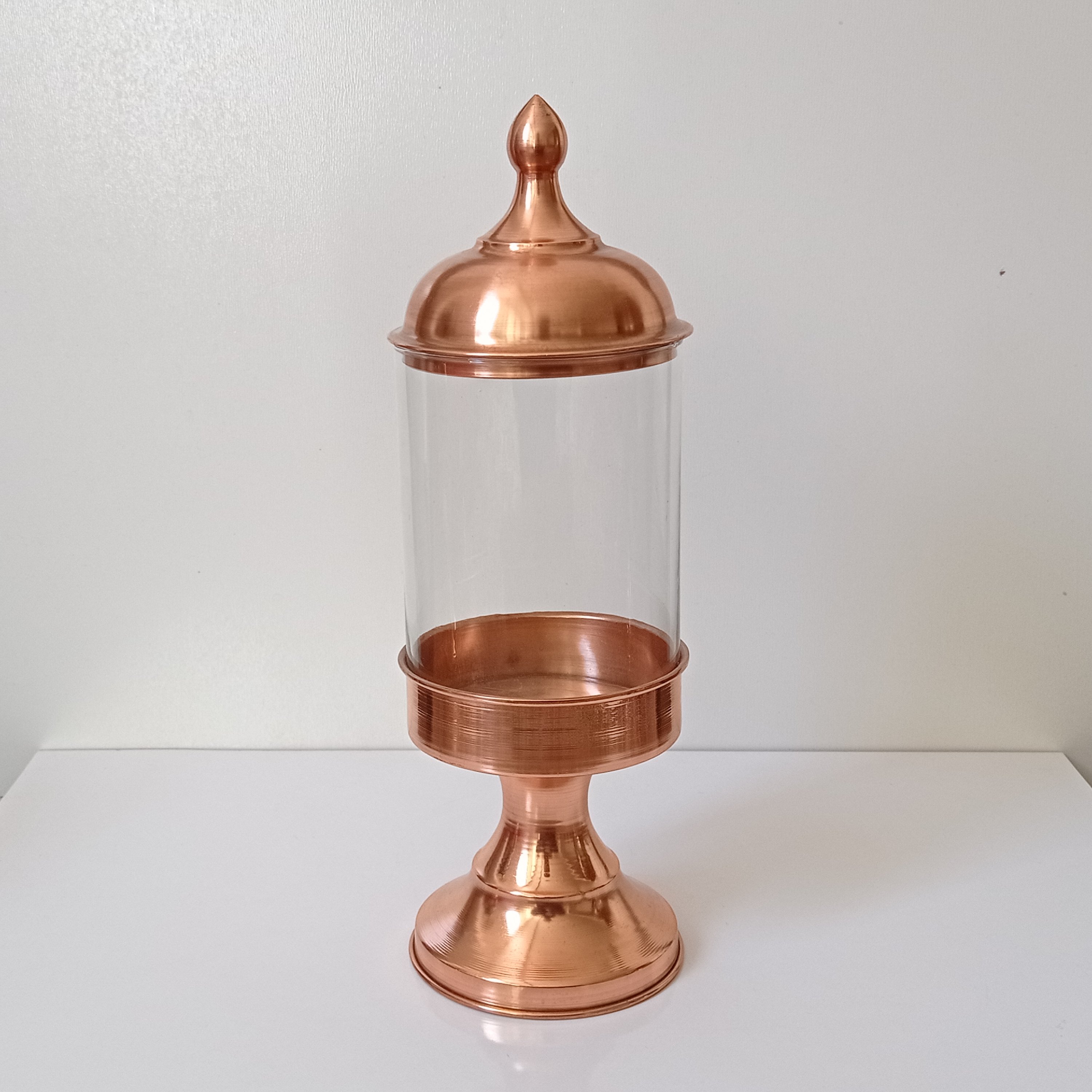 کندی باکس مسی برای ریختن شکلات و انواع نقل و نبات و به صورت پایه داردر سه سایز مختلف زینت افزای میزهای پذیرایی خواهد بود.لازم به ذکر است کندی باکس یکی از محبوب ترین و پرفروش ترین ظروف مسی پذیرایی در ماههای اخیر می باشد. ریختن انواع شکلات ، گز برای پذیرایی ریختن انواع نقل و نبات برای پذیرایی چیدمان سفره عقد، هفت سین ، شب چله دیزاین میز های جشن تولد، سالگرد ازدواج، جشن فارغ التحصیلی و… هدیه ای جذاب و شیک در مناسبتهای مختلف خرید به صورت ست سه تایی برای جهیزیه عروس تزئین و دکور بوفه منازل، مغازه ها، فروشگاهها و… کالایی پر کاربرد در هتل ها، تالار ها، کافی شاپ ها وکافه ها کندی باکس مسی تولید زنجان که توسط هنرمندان مسگر زنجانی با بهترین مواد اولیه و با ظرافت تمام و کیفیت عالی ساخته شده ، تا حس شیرین استفاده از ظروف مسی که همه ما خاطرات شیرینی با آن از گذشته داریم را دوباره برایمان در مهمانی ها و دورهمی ها تداعی کند ،این کندی باکس مسی پایه دار بسیار زیباست ، خصوصا شیشه روی این محصول با ظرافت خاصی کار شده و زیبایی دو چندانی به این محصول داده ، این محصول یکی از پر فروشترین می باشد ، ظروف مسی زنجان کیفیت ساخت عالی و طراحی فوق العاده ای دارد .