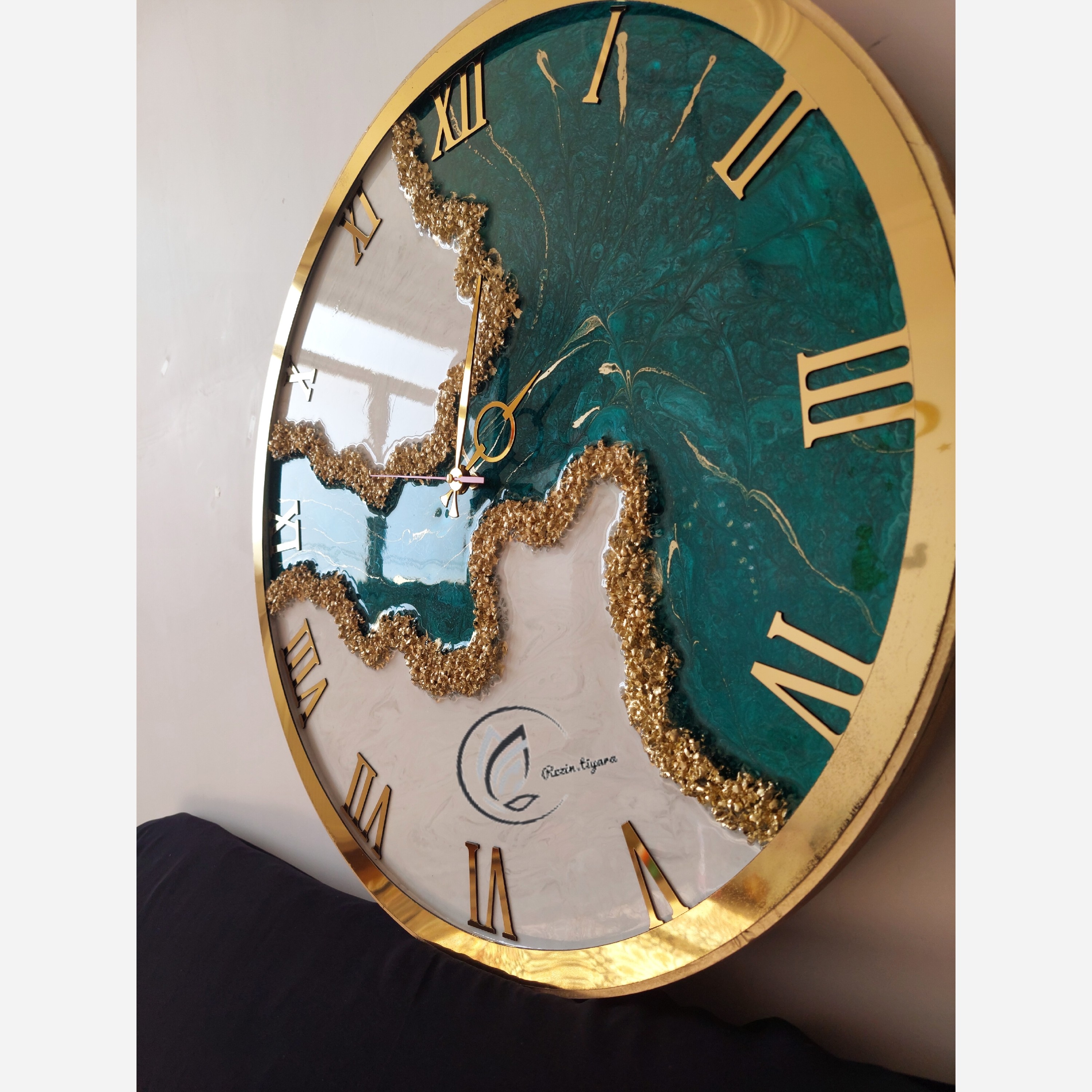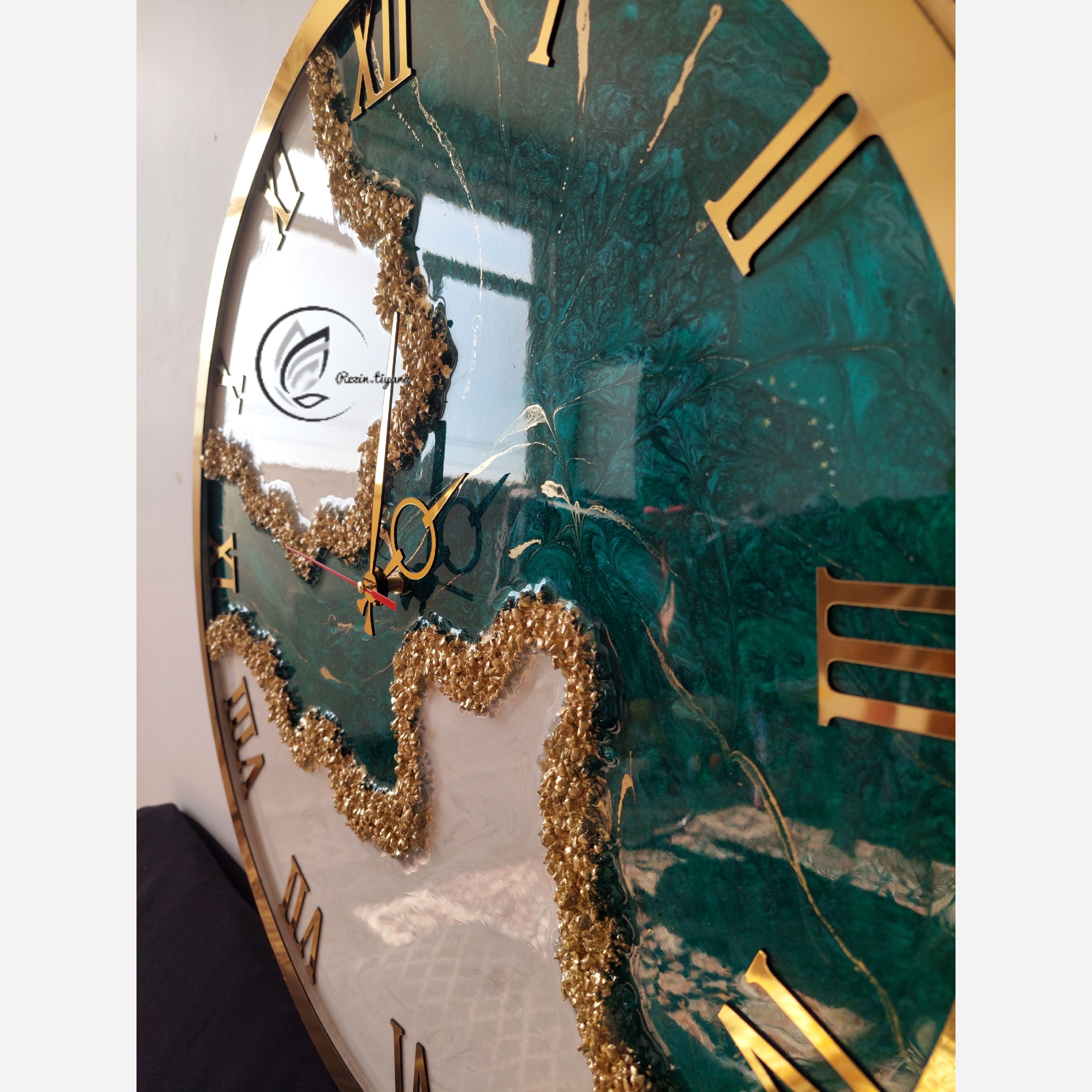 ساعت رزینی سبز درباری کلاف دار خارجی موتور تایوانی آرامگرد محکم و مقاوم بسیار زیبا و شیک قابل ست شدن با هر رنگی قابل سفارش در هر رنگ رینگ دار طلایی