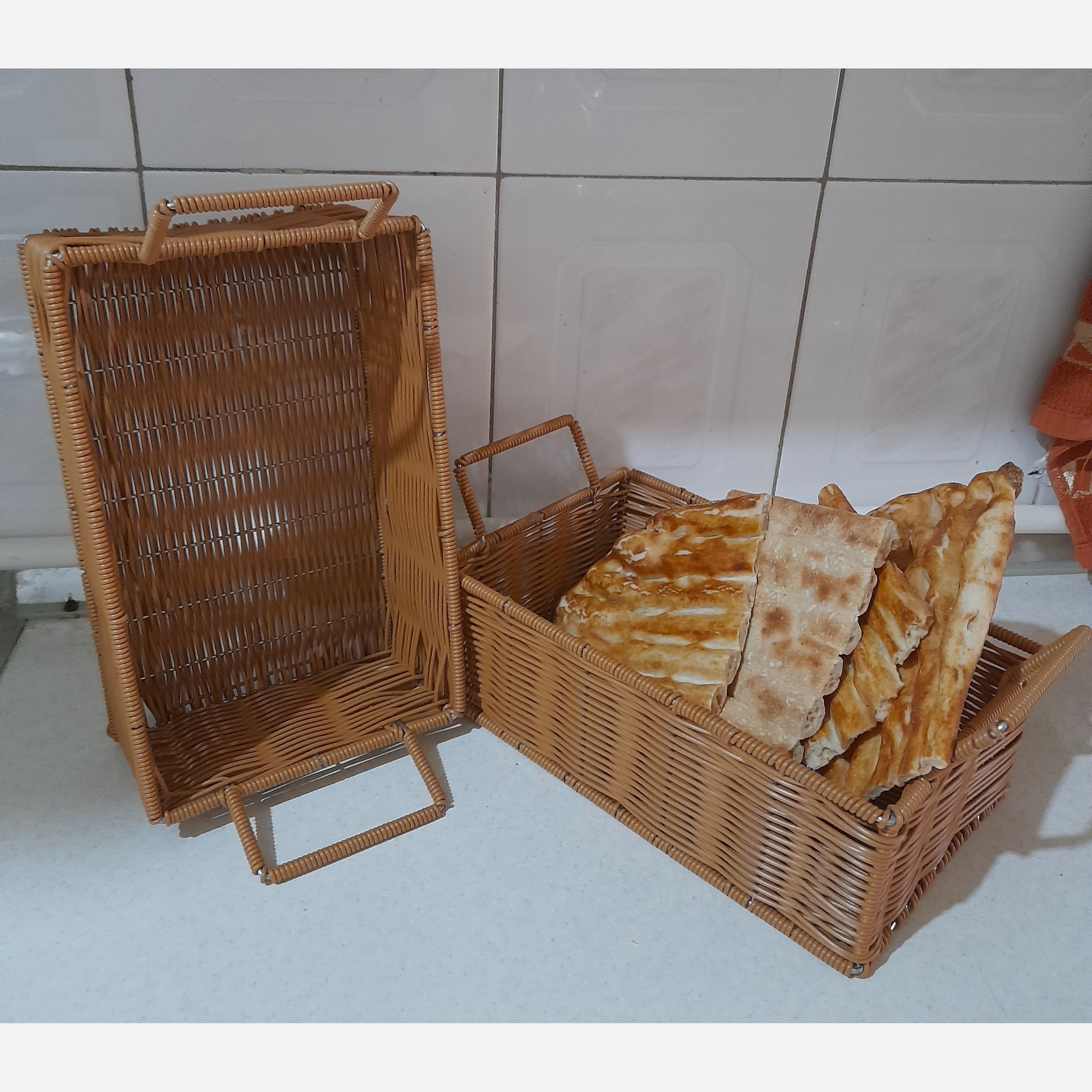 سبد مستطیل دسته دار بدنه فلز مخصوص نان و میوه مبلمونسرا مدل 272978
