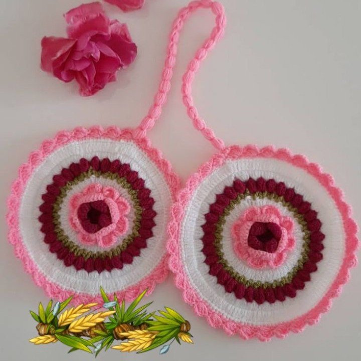دستگیره آشپز خانه بافته شده با کاموای اکلیل تاب بسیار بادام بسیار زیبا وشیک