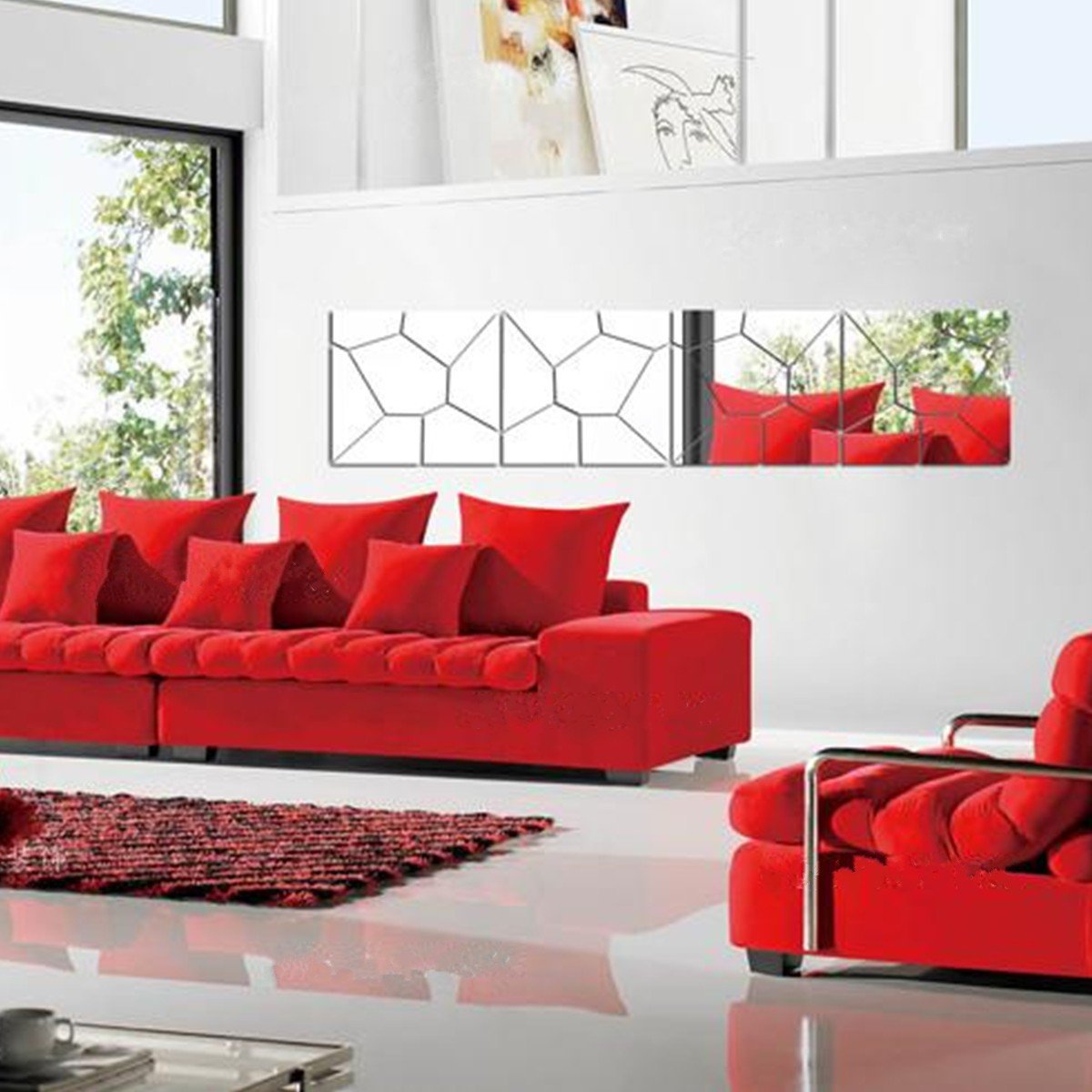 آینه ی دکوراتیو دیواری خود چسب پشت چسبدار چگونه میتوان دکوراتیو مناسبی تهیه کرد که قیمت مناسب داشته باشد و زیبایی خانه را افزایش دهد و دکوراتیو مدرن و بروزی نیز باشد. آینه ی دکوراتیو کد md05 در 8 تکه ی 30*30 سانتی متری پشت چسبدار خود چسب با نصب آسانکافیست لایه محافظ چسب پشت را جدا کرده روی دیوار نصب کنید . قبل از نصب بهتر است دیوار محل نصب با یک پارچه گردگیری شود. روی آینه محافظ ضد خش را پس از نصب جدا کنید.