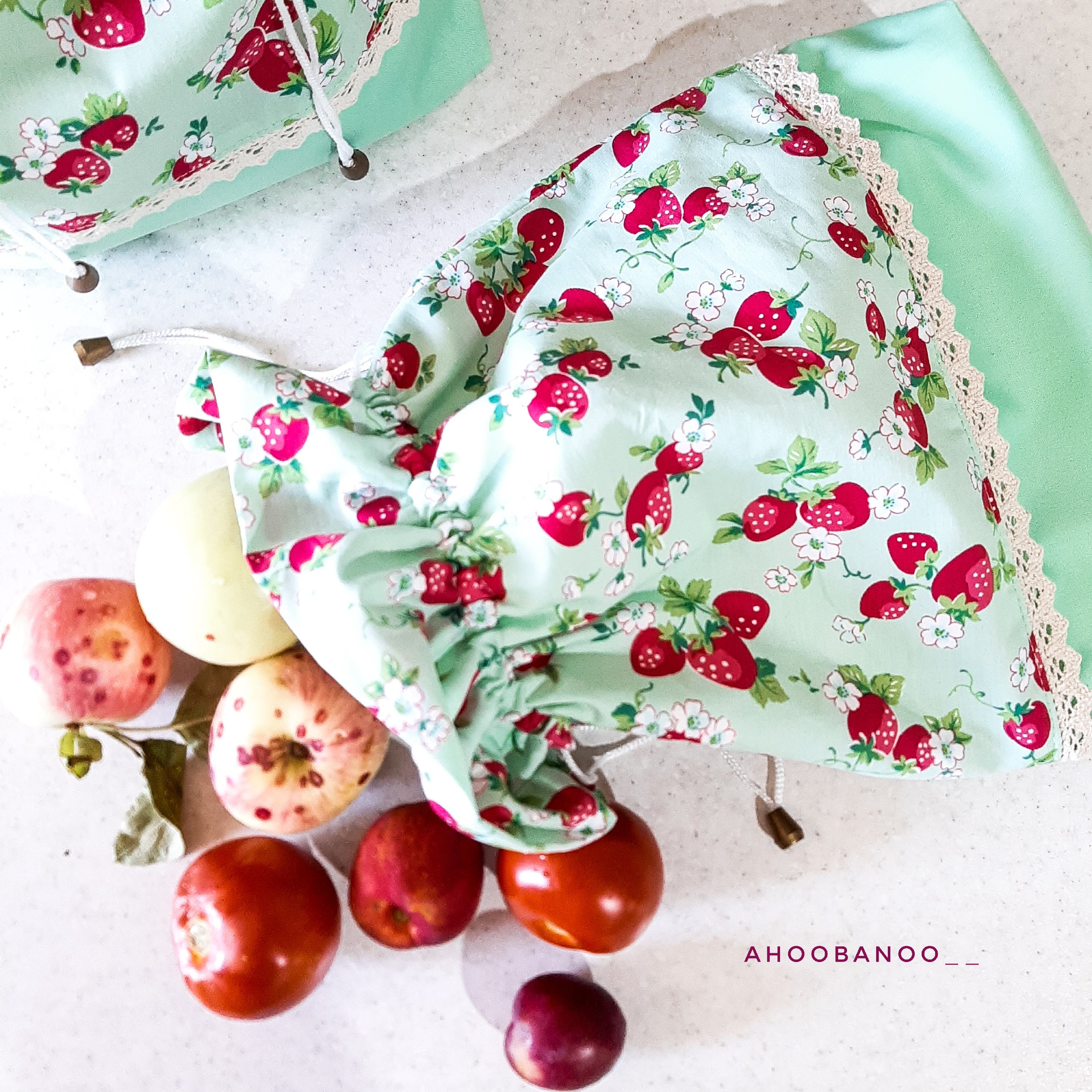 کیسه آستردار حجم دار طرح میوه توت فرنگی مخصوص خشکبار نان و میوه و سبزیجات مبلمونسرا مدل 301442