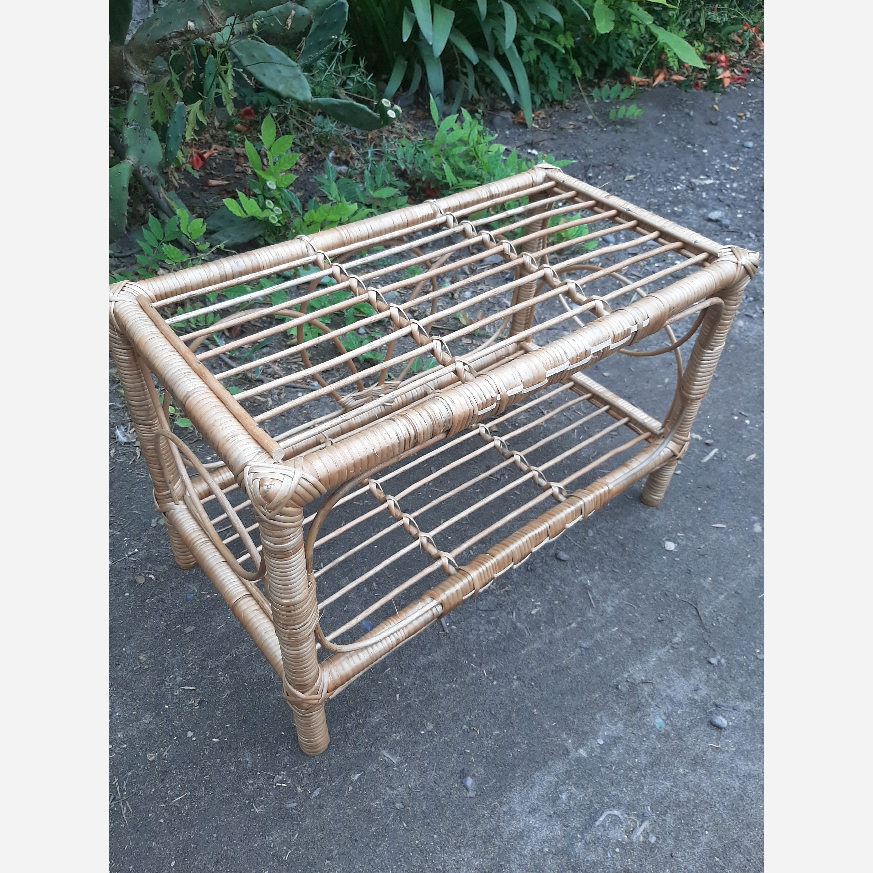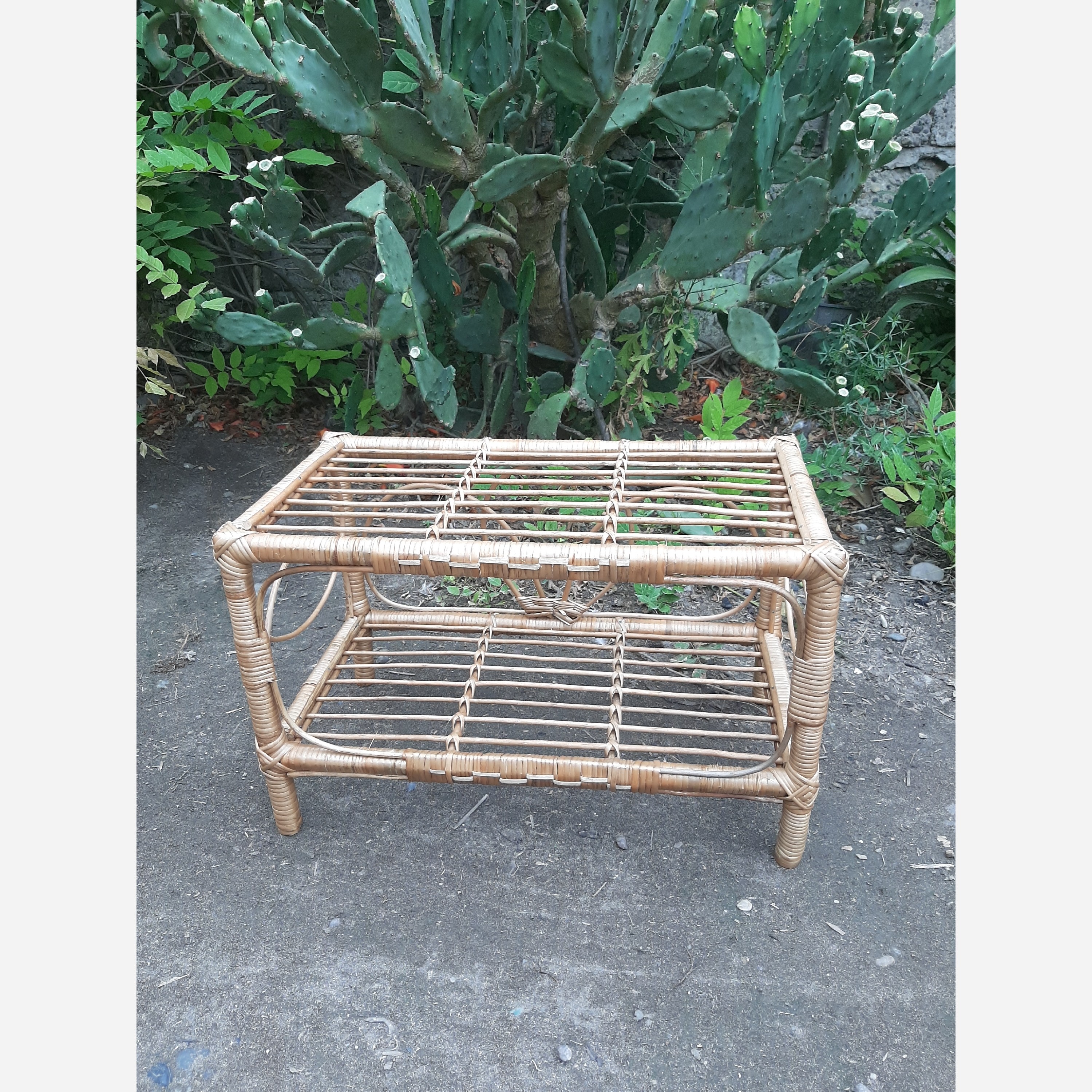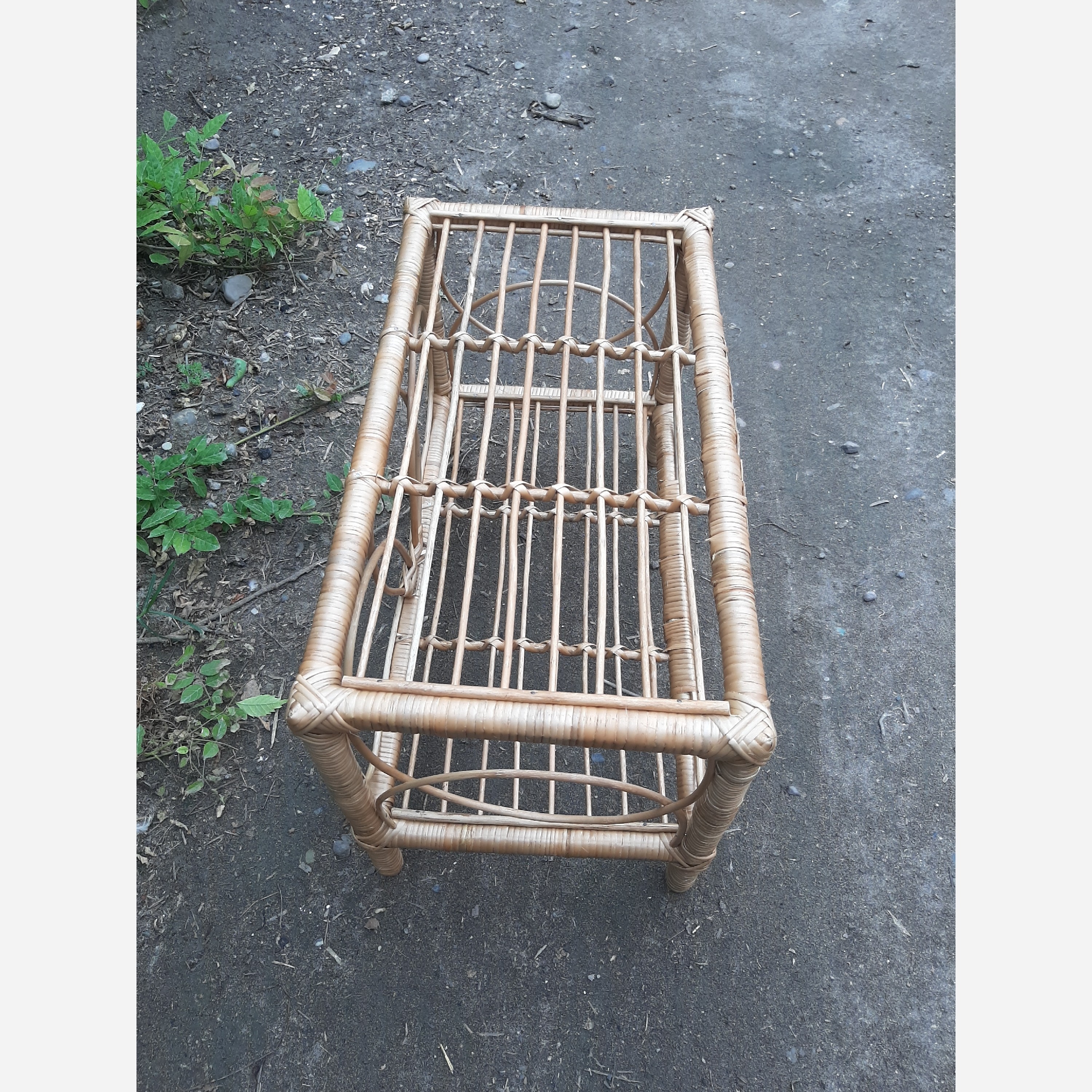 میز عسلی مسطتیل چهار چوب چوبی بافته شده از چوب نوعی درخت بید قابل شستشو و رنگ امیزی