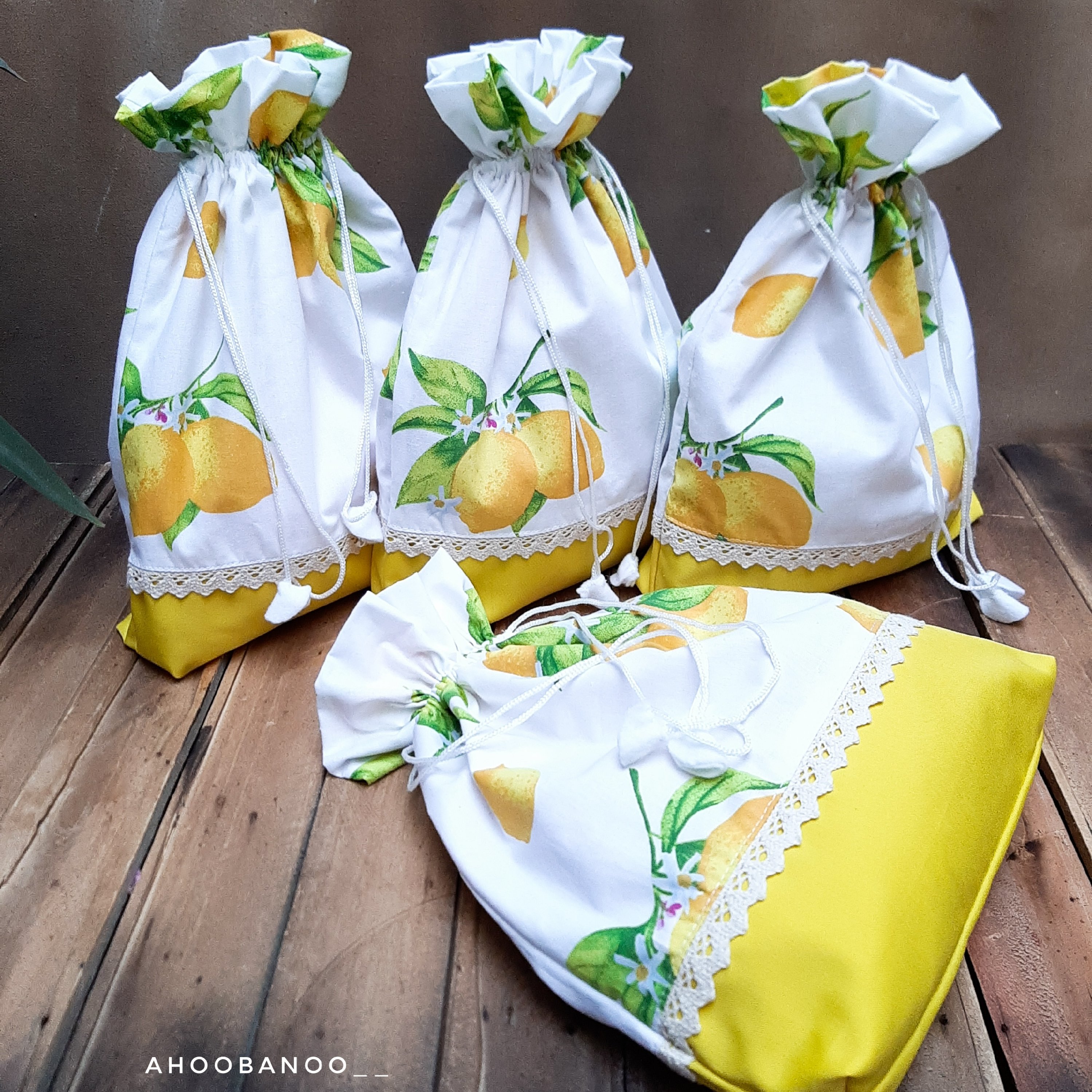 کیسه آستردار و حجم دار طرح میوه لیمو زرد قناری ترکیبی با رنگ زرد مبلمونسرا مدل 301443