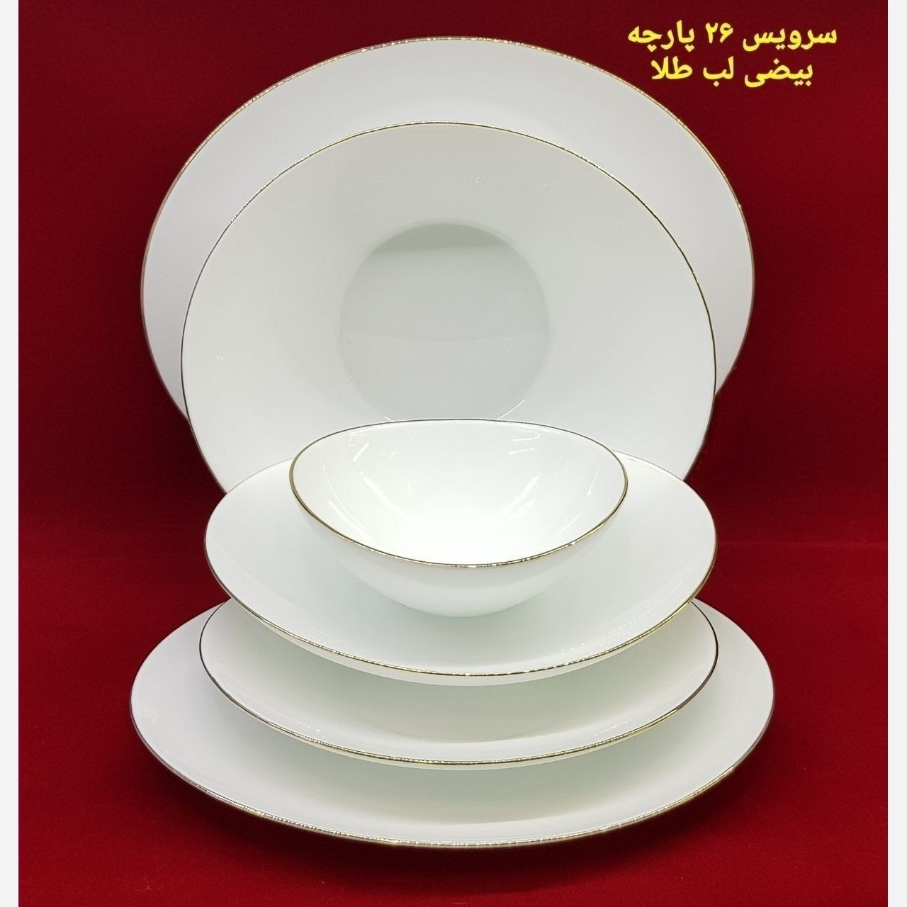 سرویس ارکوپال 26 پارچ بیضی لب طلا کیفیت بالا رنگ ثابت اقلام همراه🔽 6 عدد بشقاب پلویی 6 عدد بشقاب خورشتی 6 عدد پیشدستی 6 عدد کاسه ماستی 1 عدد دیس 1 عدد کاسه بزرگ سالاد