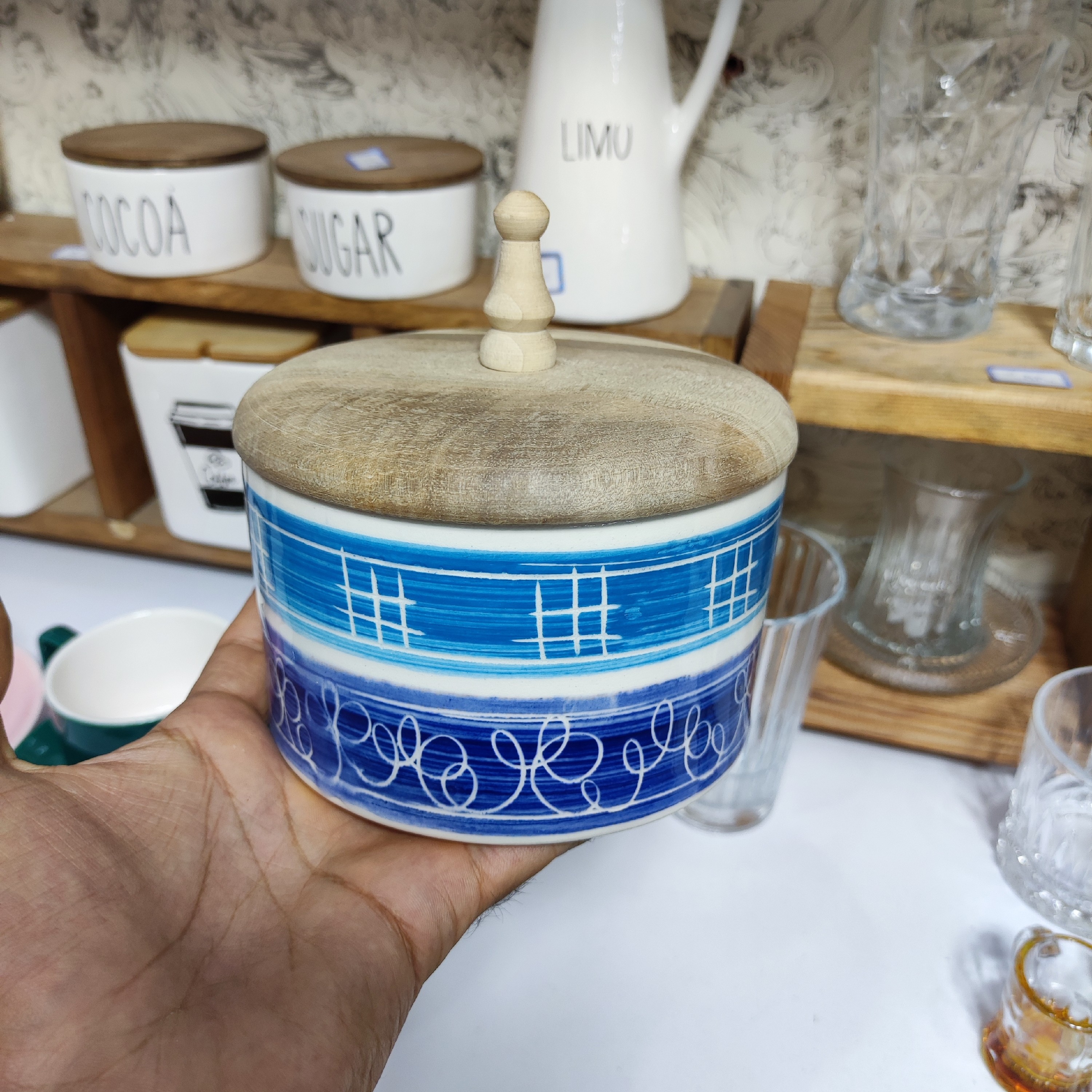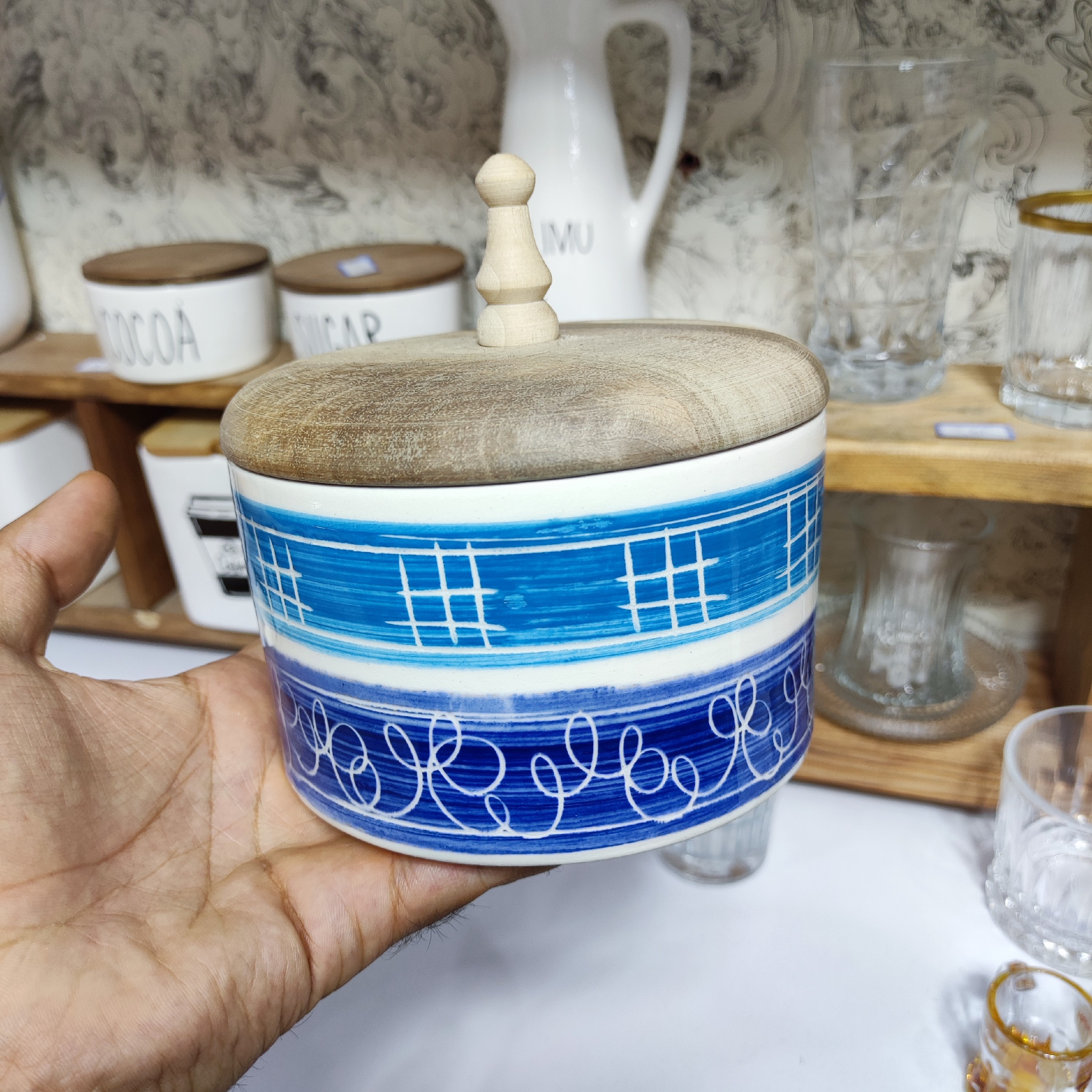 کیفیت چوب و سرامیک درجه یک نقاشی دستی زیر لعابی قطر 13 ارتفاع 10