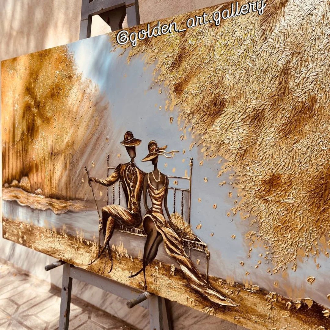 تابلو نقاشی عاشقانه ورق طلا مبلمونسرا مدل 267481