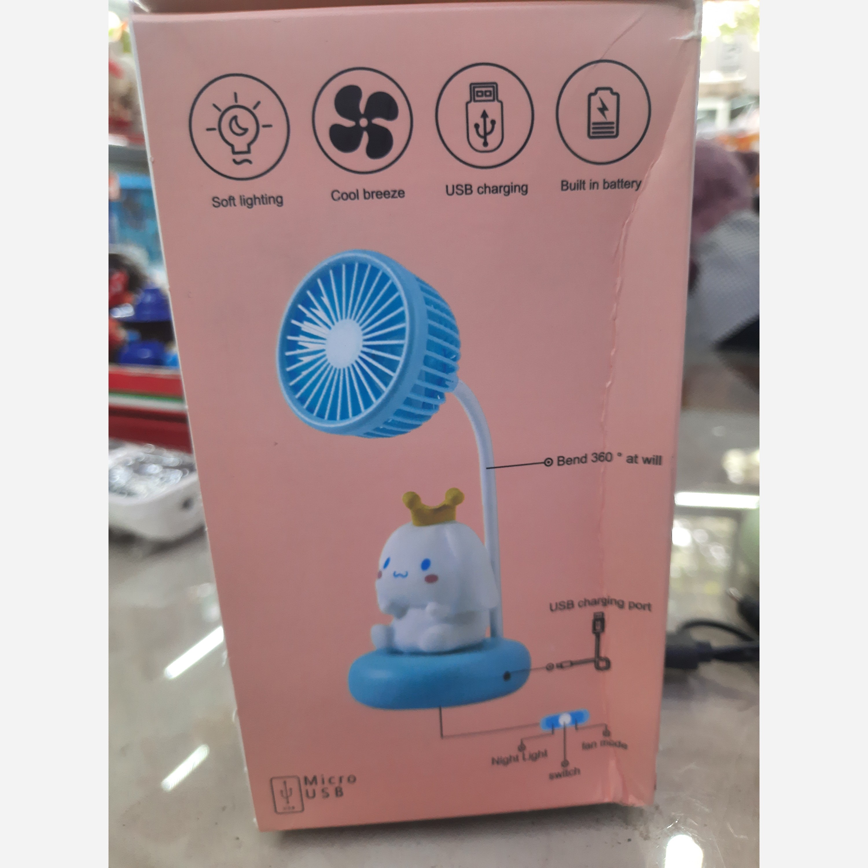 چراغ خواب پنکه دار شارژی طرح سگ تک جعبه وارداتی پتکه پایه ای نرم و قابلیت تنظیم دستی به همه جهت همراه داشتن کابل شارژ دکمه سه حالته پنکه وچراغ خواب و خاموش روشن برای شارژ باید کابل را به سری شارژر موبایل متصل کنید .