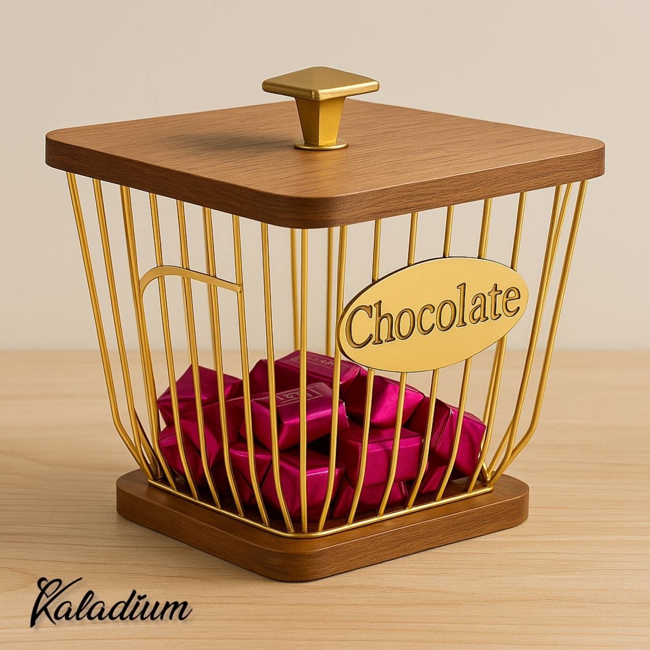 🟣 شکلات خوری بلوط مربع طلایی 🟢 کیفیت عالی 👌 ✨ جنس فلزی ⚡️ درب بامبو ، تک جعبه #شکلات_خوری