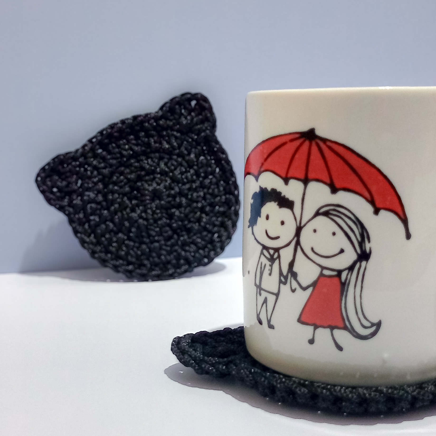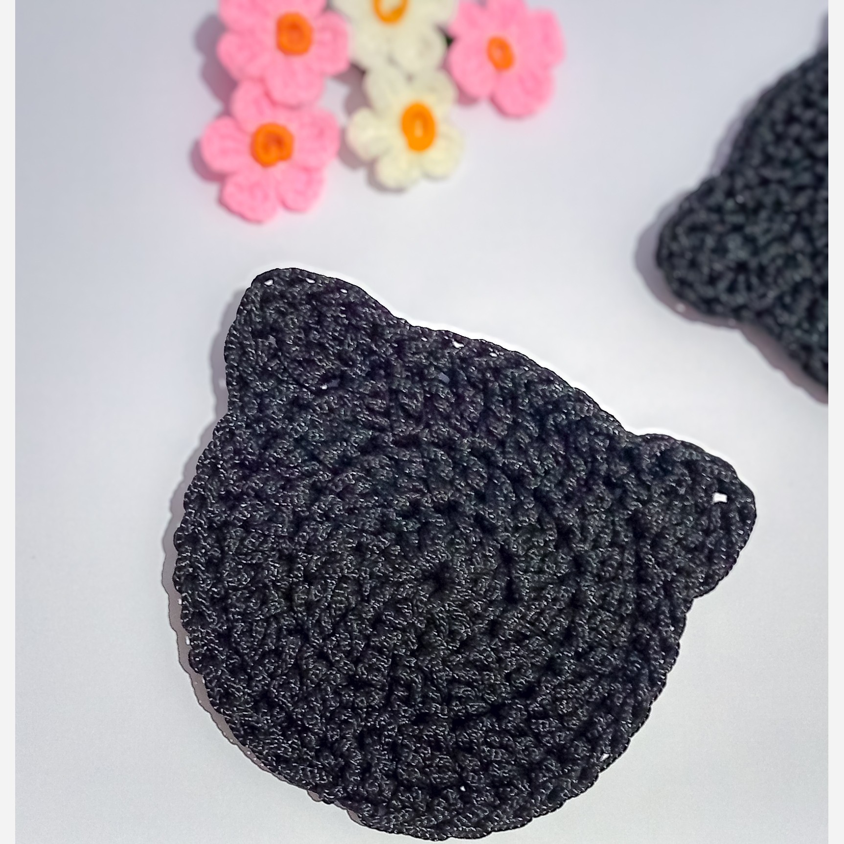 زیر لیوانی طرح پیشی🐱 اندازه و قطر کار: حدود 10 سانت بافته شده با نخ کرومه