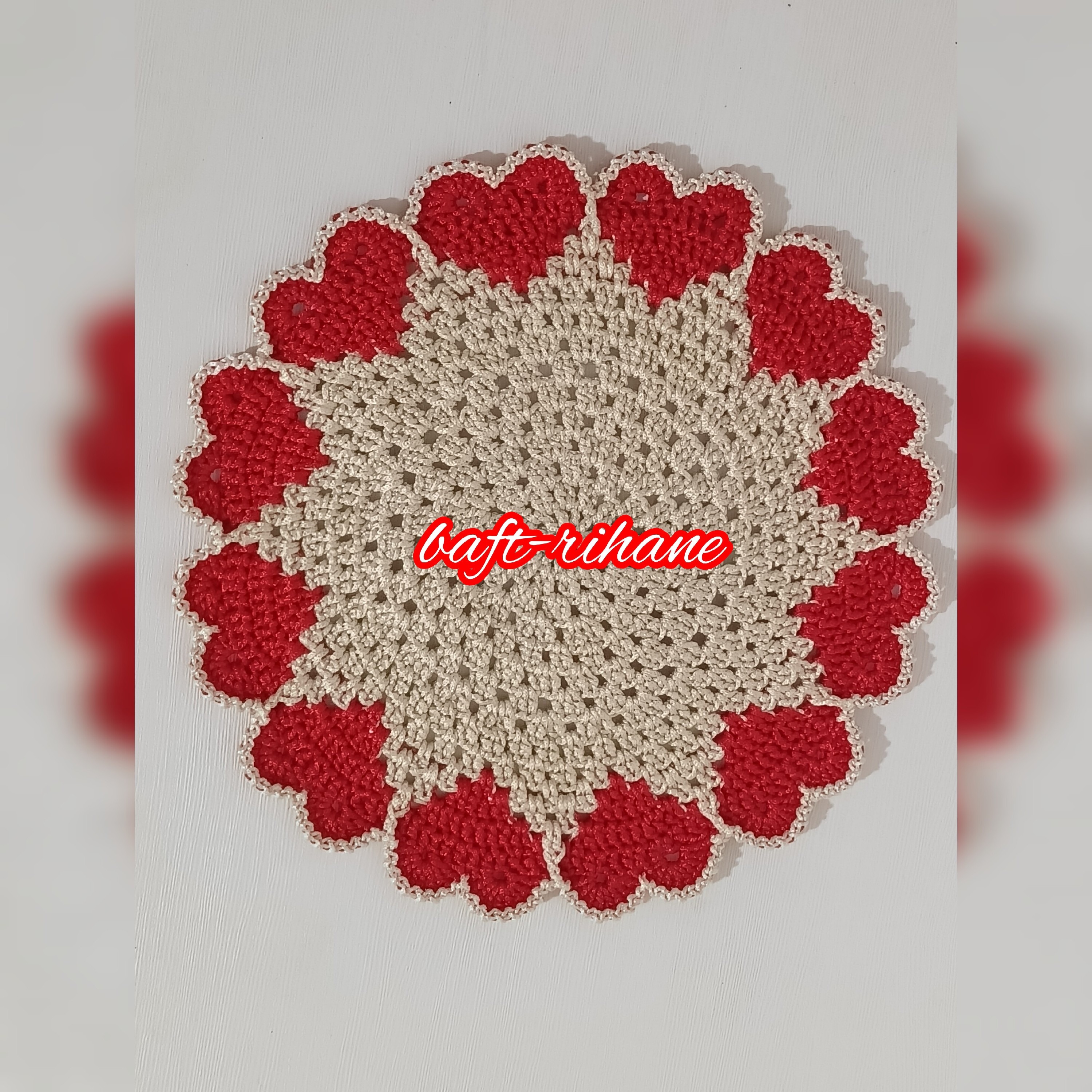 زیر بشقابی طرح قلب به قطر 35سانت در رنگ دلخواه شما زیبا وشیک وترند بافته شده با مکرومه