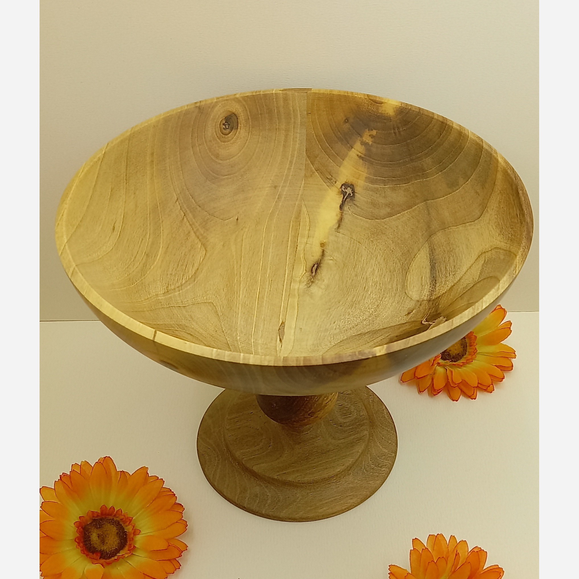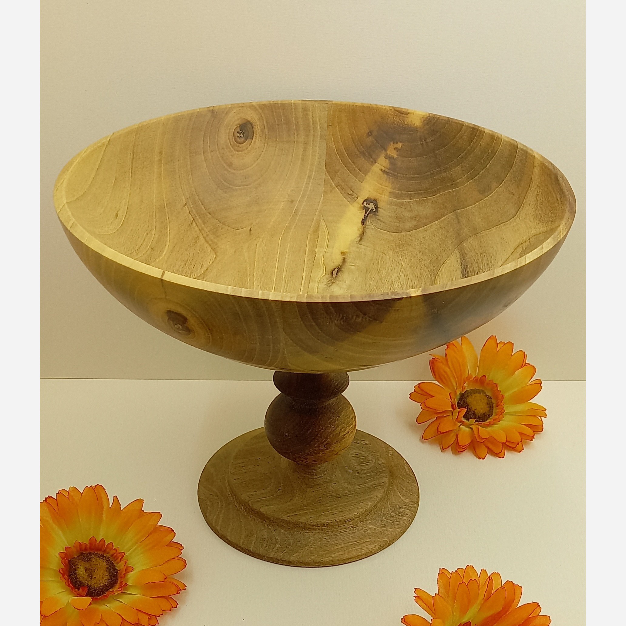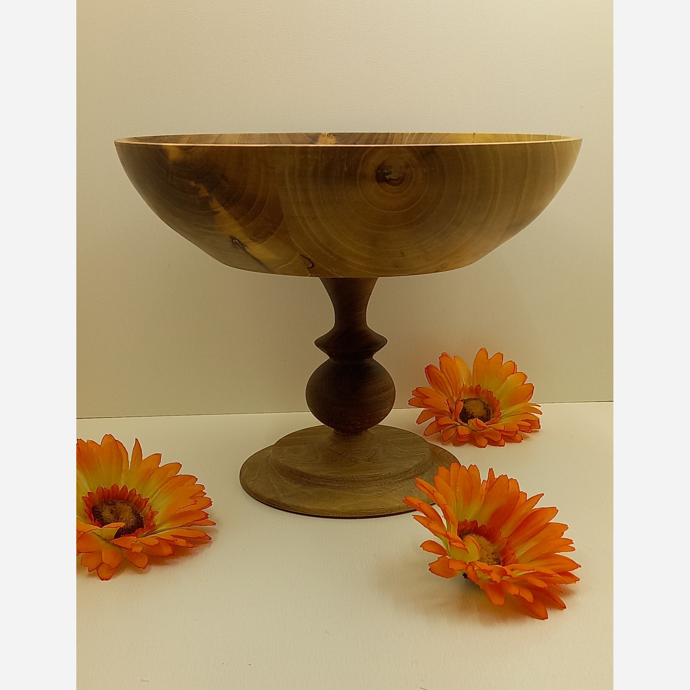 میوه خوری پایه دار با چوب صد در صد گردو با فرمی شیک و طرح و نقش و رگهای بسیار زیبا و تو دل برو دستساز و بسیار سبک و روغنکاری شده با روغن خوراکی