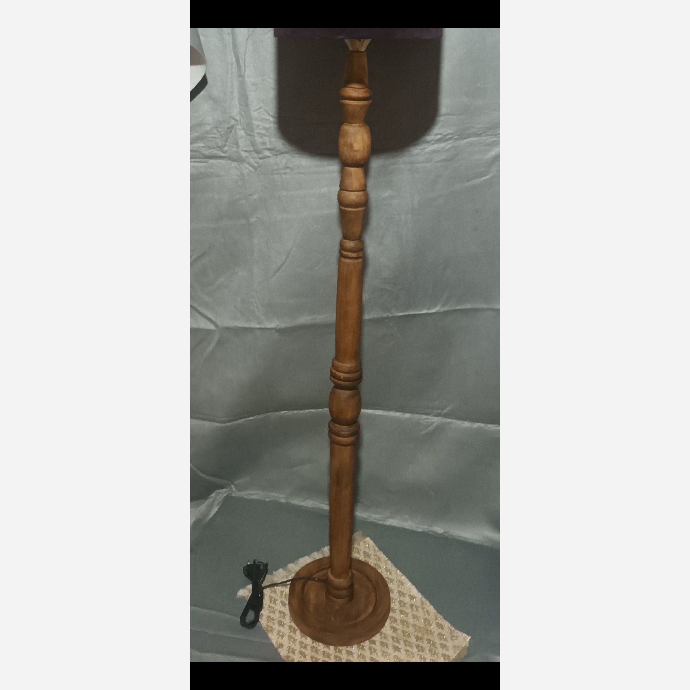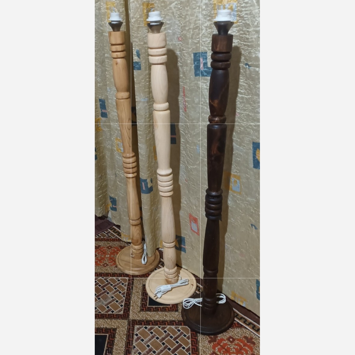 پایه آباژور ایستاده دارای سیم کلید دار و سرپیچ تک پایه خام و رنگ شده تنوع رنگ قهوه ای محصول بدون شید مناسب برای شید های مکرومه استوانه و مخروطی و رافیا مناسب شیدهای گریفت سر پیچبزرگ