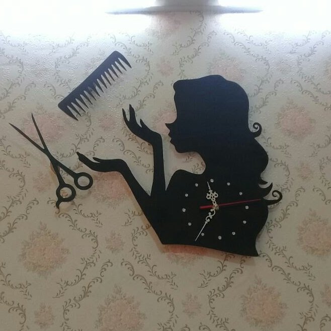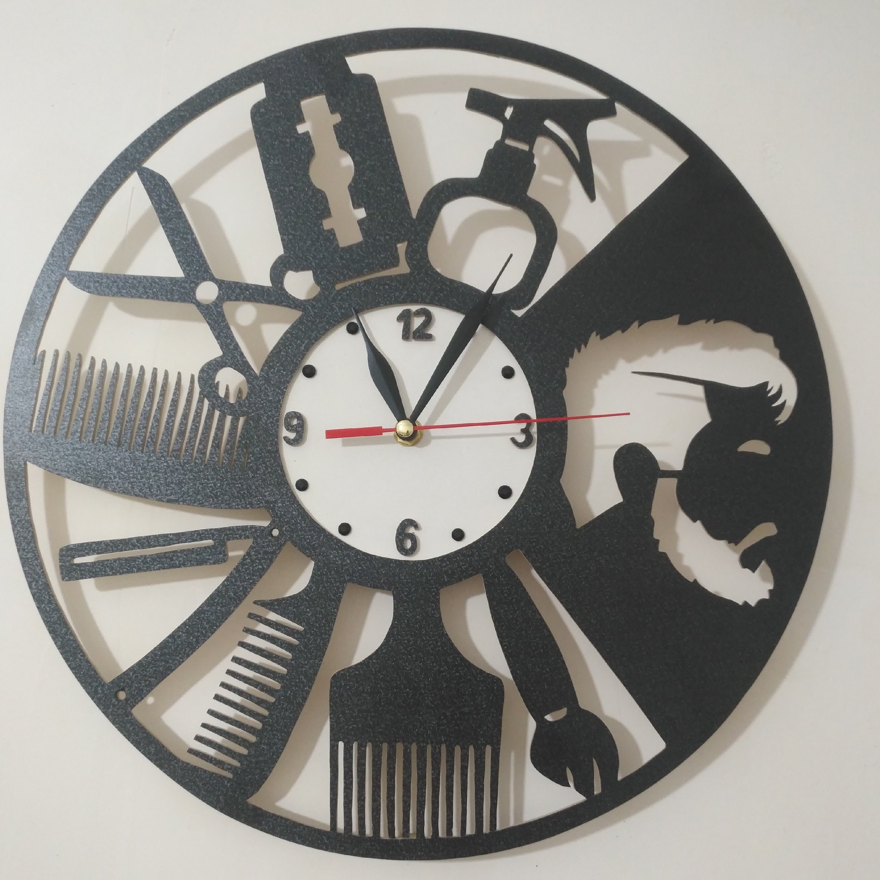 ساعت دیواری چوبی آرایشگاه مردانه و زنانه با موتور آرام گرد کم مصرف قابل سفارش در طرح دلخواه مبلمونسرا مدل 236611