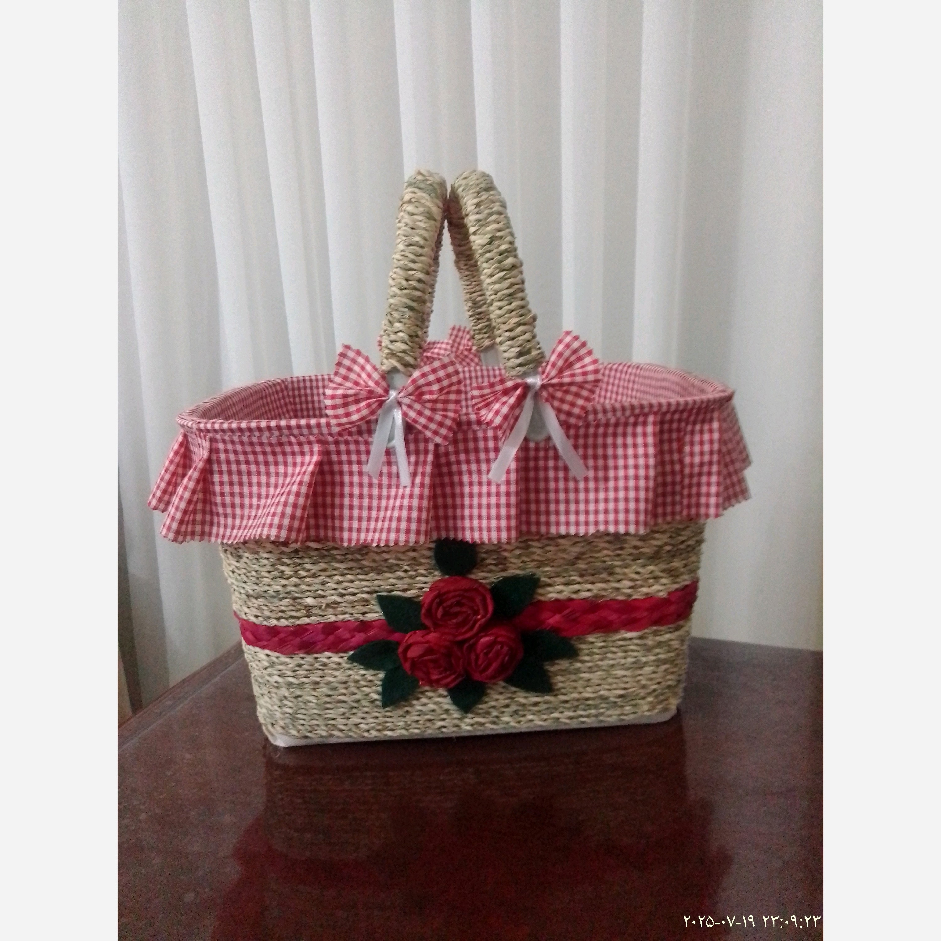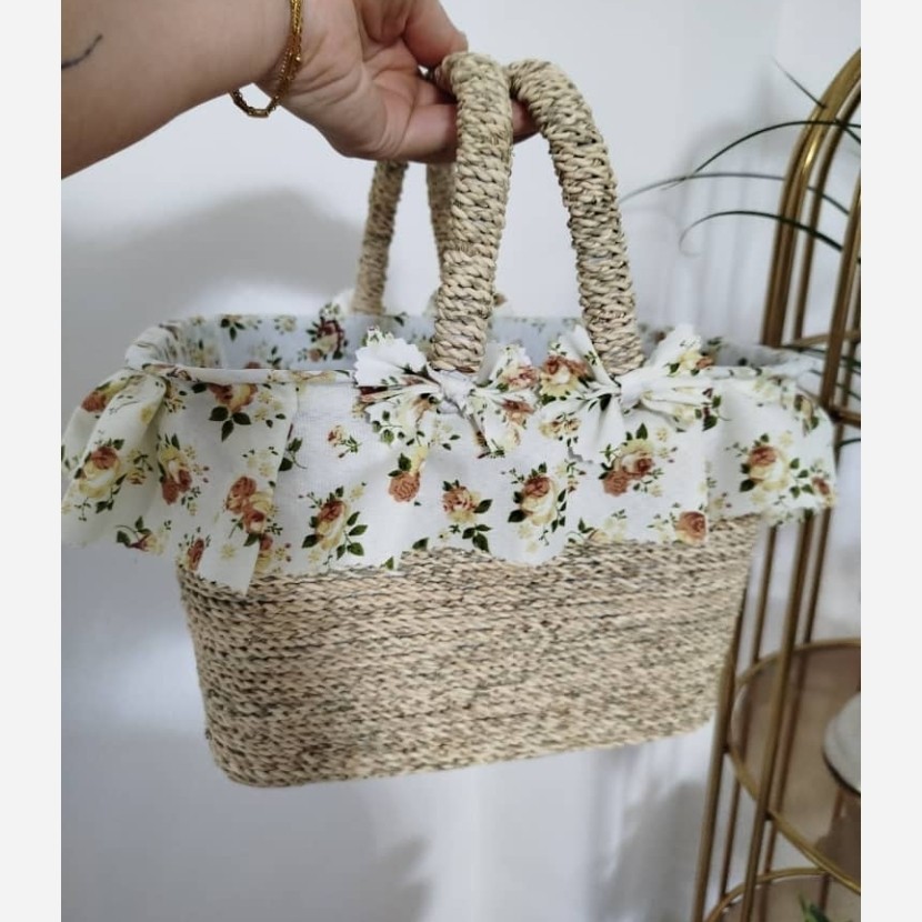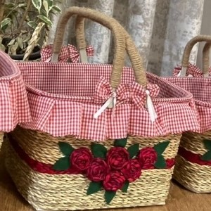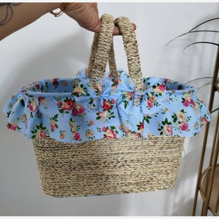 سبد پیک نیک سایز متوسط رنگ طرح پارچه استر در صورت موجود بودن به دلخواه مشتری قالب پلاستیکی داخل استر پارچه ای بیرون حصیری