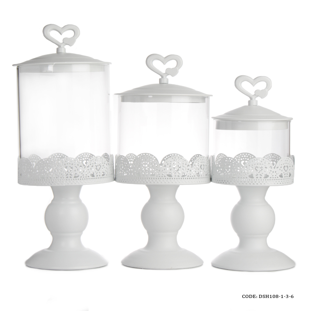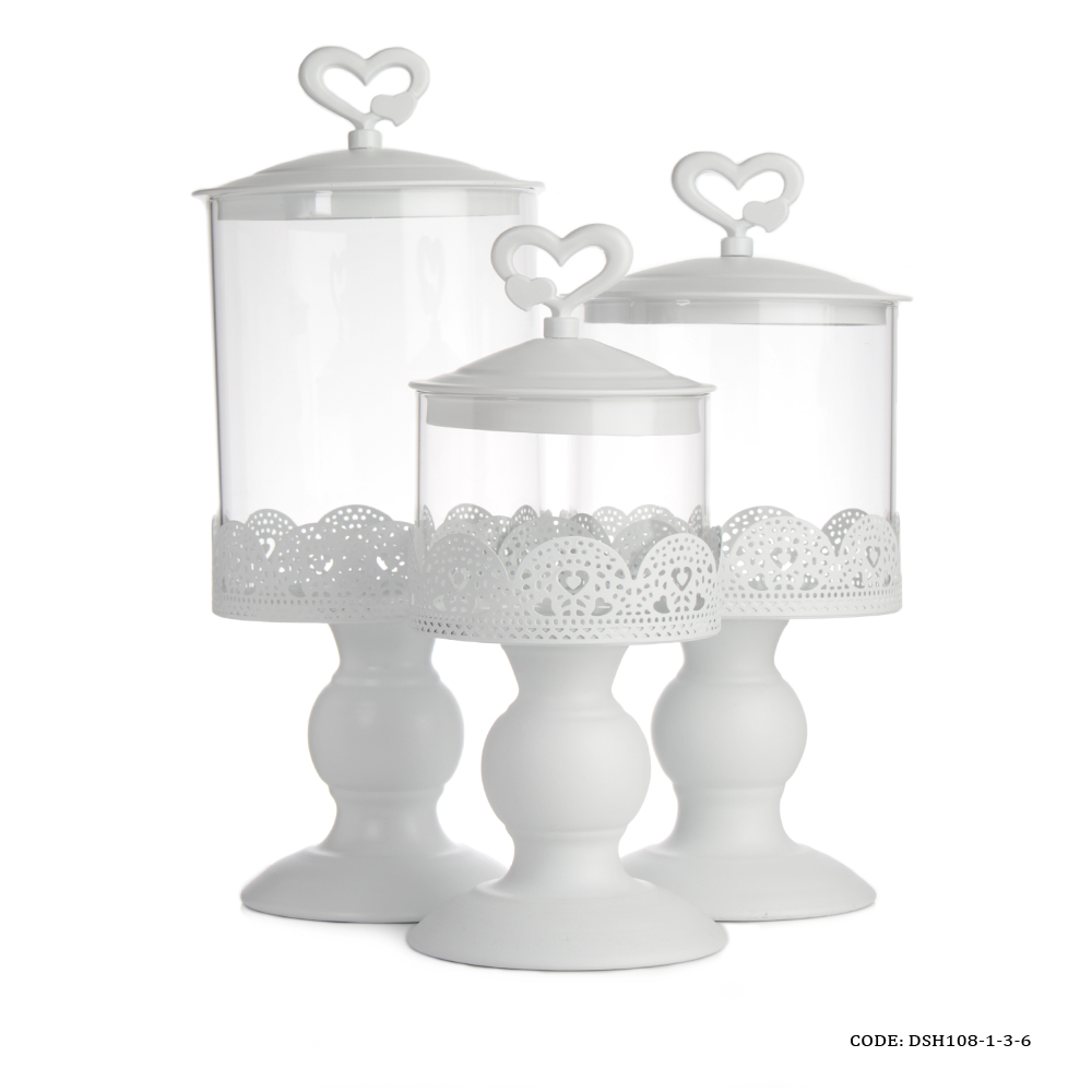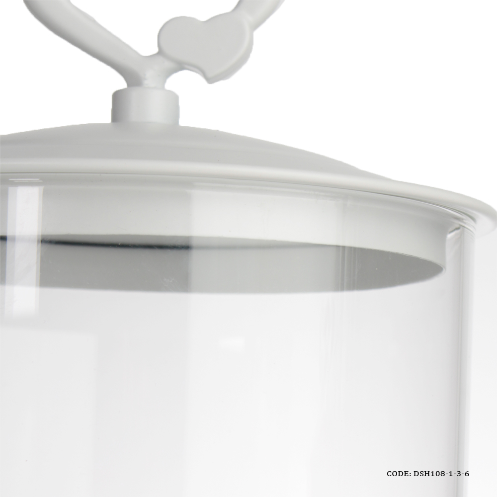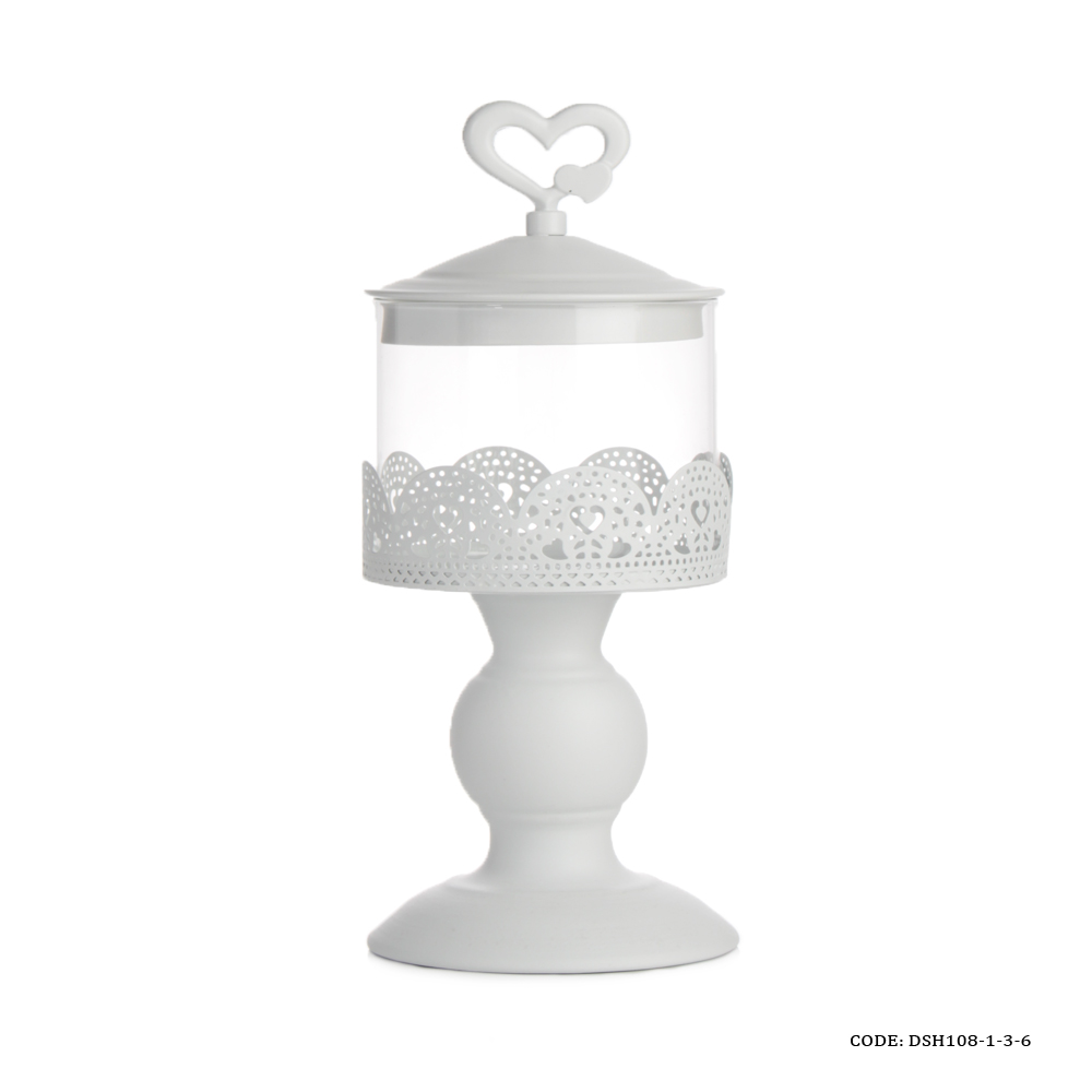 کندی باکس پایه و درب فلزی بدنه شیشه بدون حباب قابلیت جدا شدن شیشه از پایه درپوش دارای دسته قلبی فلز محکم و مقاوم مناسب برای شکلات ومیوه خشک و خوراکی های ریز محصول وارداتی ابعاد مدل کوچک : قطر 10 سانتی متر ارتفاع کلی 28 سانتی متر ارتفاع بدون درب 20 سانتی متر ابعاد مدل متوسط : قطر 21سانتی متر ارتفاع کلی 31 سانتی متر ارتفاع بدون درب 24.5 سانتی متر ابعاد مدل بزرگ : قطر 12 سانتی متر ارتفاع کلی 35 سانتی متر ارتفاع بدون درب 29 سانتی متر جنس : فلزی جنس پایه : فلزی جنس درب : فلزی حباب : دارد درپوش : دارد دسته : ندارد رنگ : سفید شکل : استوانه نحوه نگهداری : شستشو با دست سایز : بزرگ, سه سایز, کوچک, متوسط