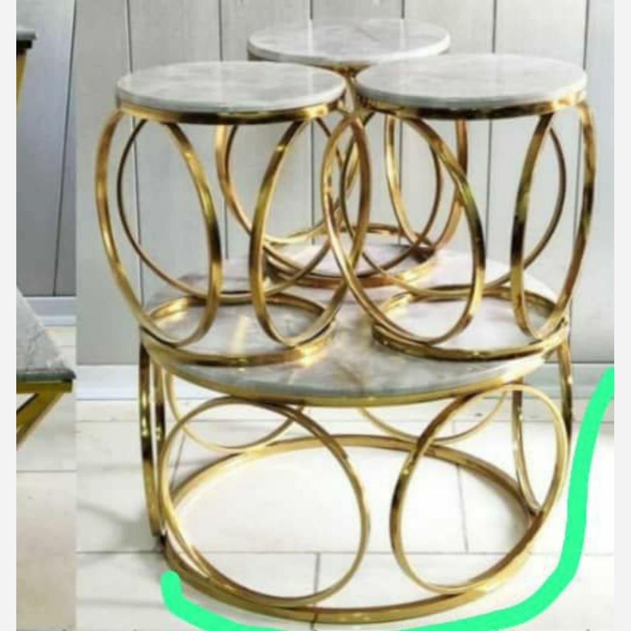 جلو مبلی و عسلی فلزی دررنگبندی و طرح دلخواه شما مربع و گرد یک عدد جلو مبلی و سه تا عسلی