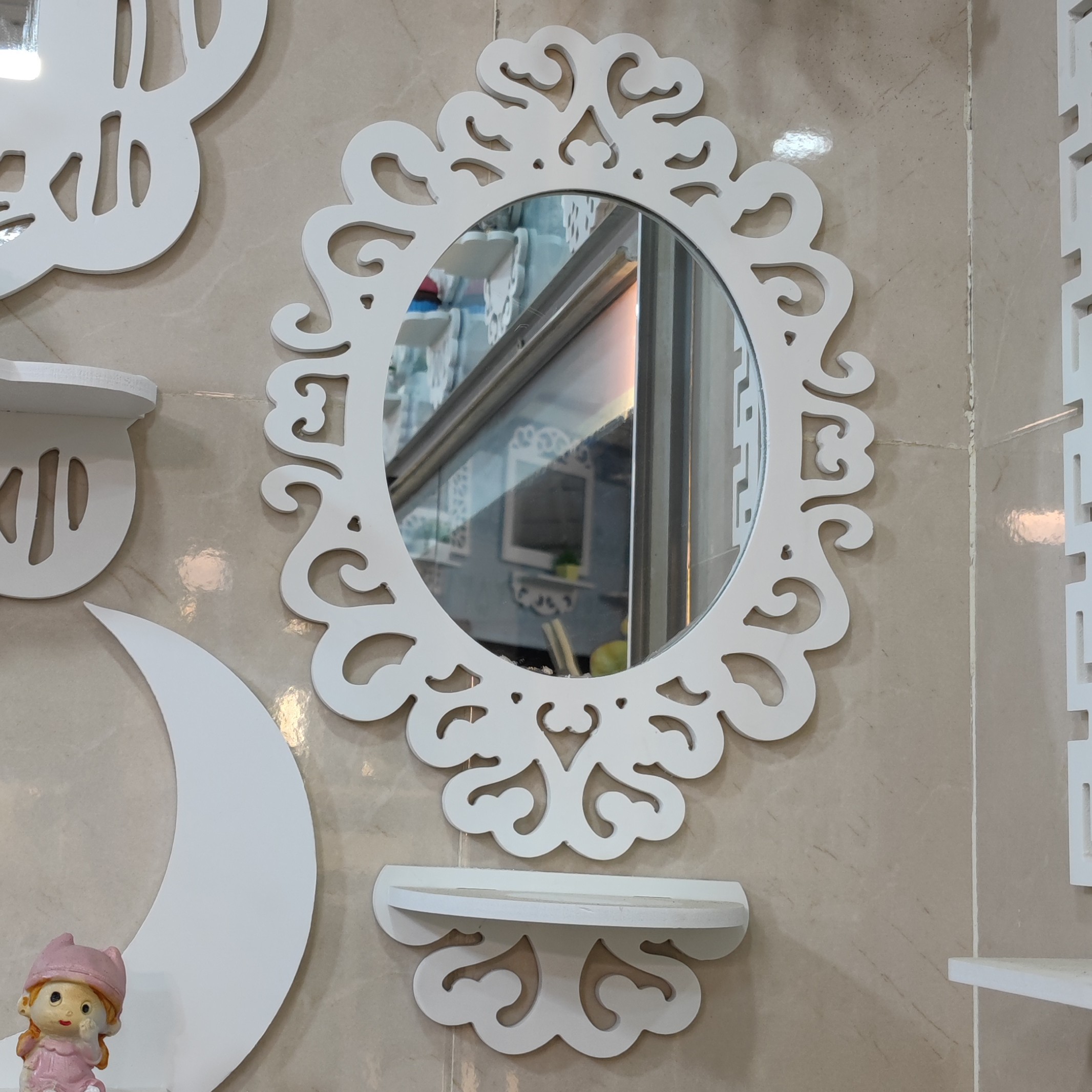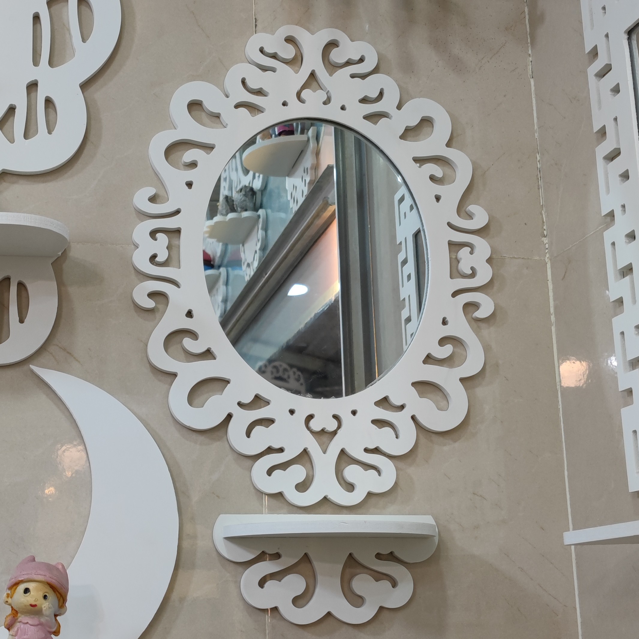 محصول آینه شلف طرح بیضی به همراه طاقچه اشانتیون سایز کوچک سایز 40 ضدآب مناسب حمام و توالت