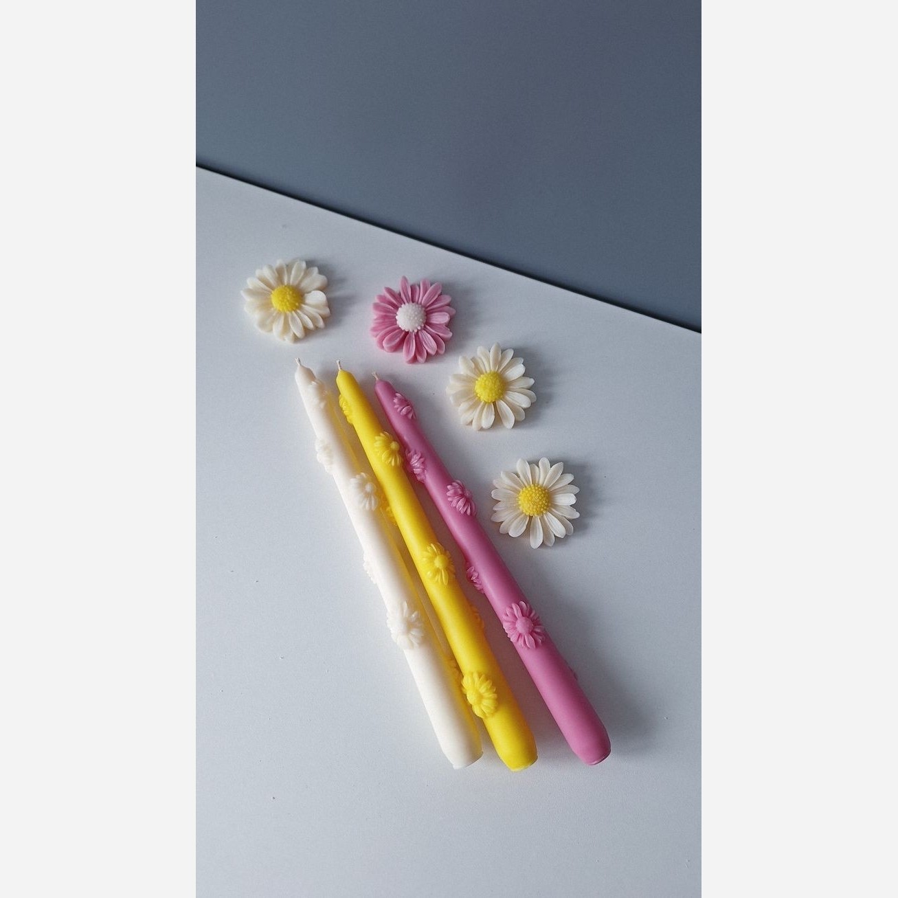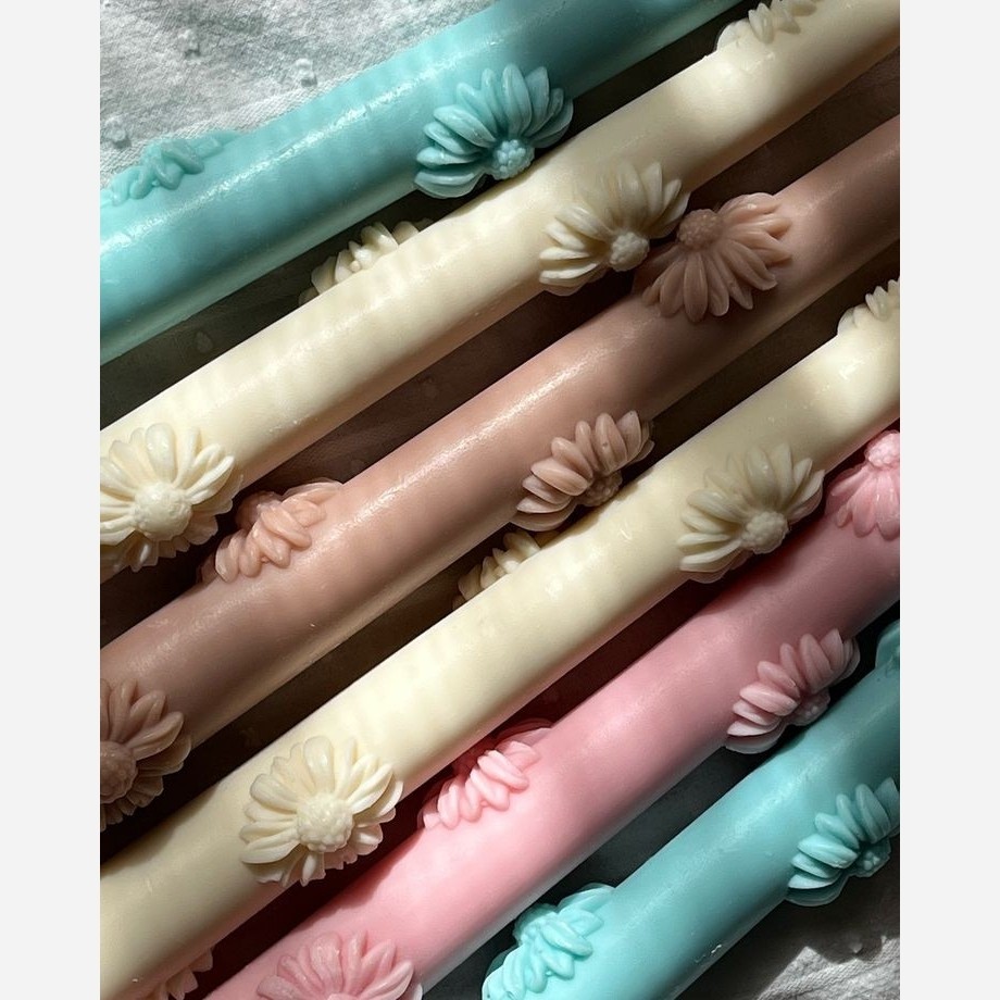 شمع قلمی وخاص طرح بابونه قابل اجرا در انواع رنگ های نود و پاستیلی عرضه بصورت تک و عمده