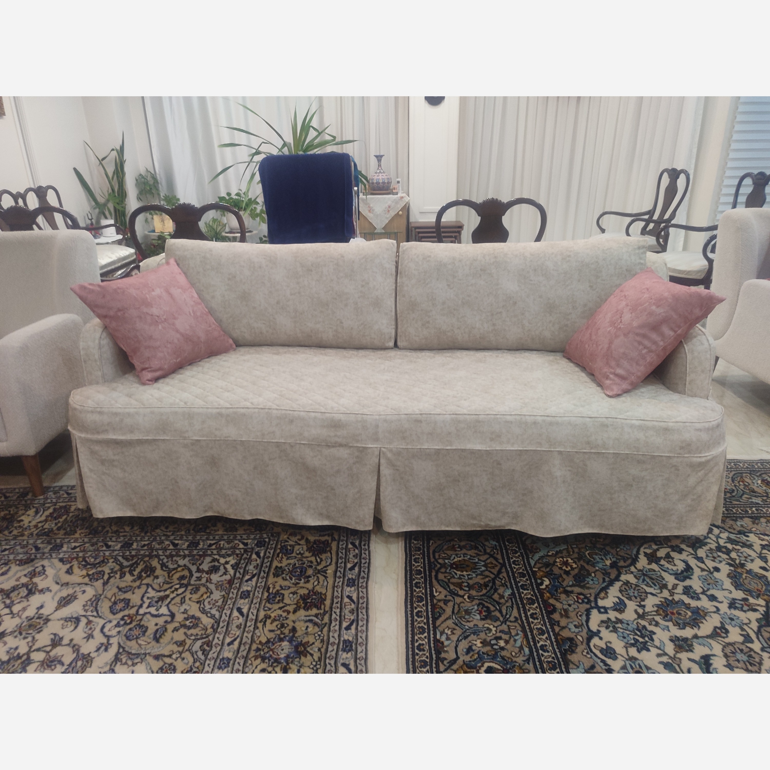 دوخت انواع کاور مبل ژلاتینی پارچه ای و مطلسه سه سال ضمانت دوخت و جنس با قید در فاکتور تحویل فوری. اندازه گیری دقیق مبلمان شما در منزل شما انجام میشود و کاور متناسب با مبل شما دوخته میشود.