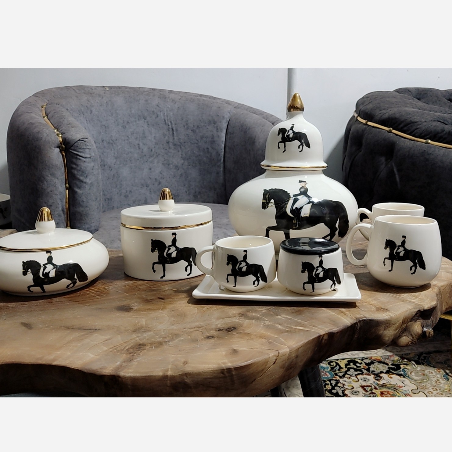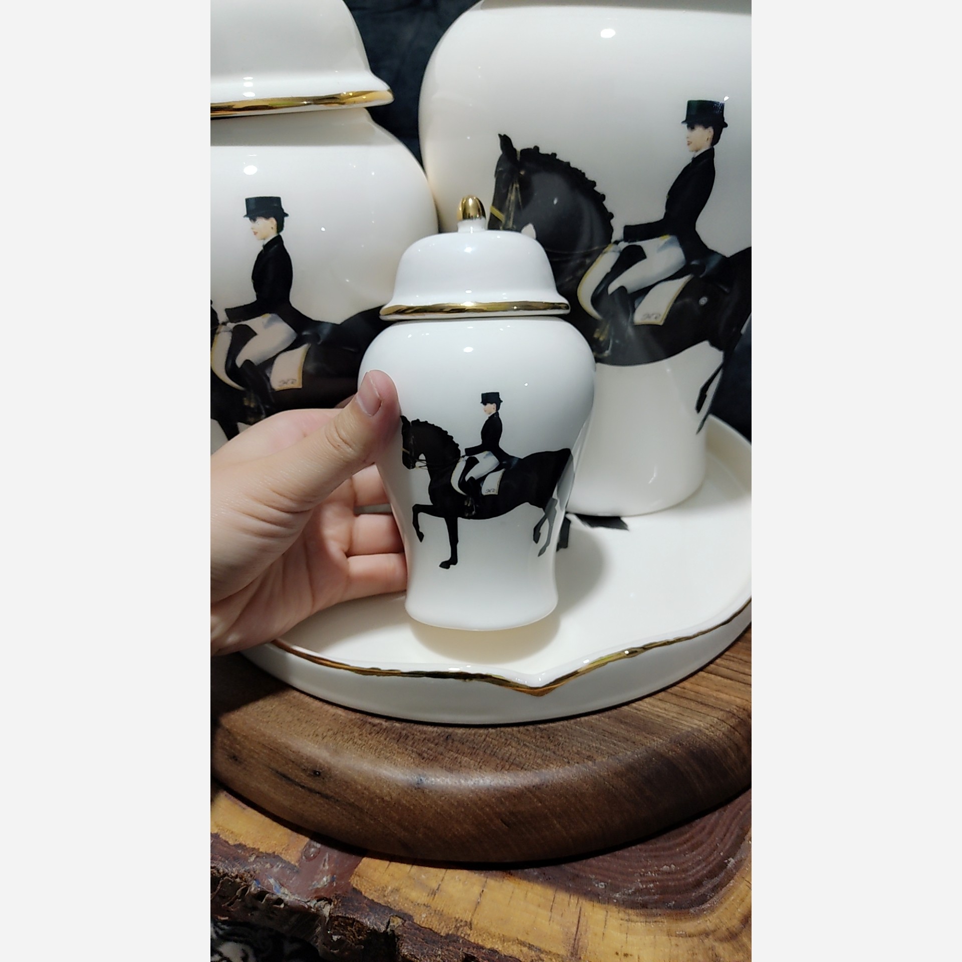 ارسال رایگان،ست جینجرجار سرامیکی طرح هرمس،جینجرجار سرامیکی طرح اسب سیاه،جینجرجار طرح اسب،مرد سوارکار مبلمونسرا مدل 275792