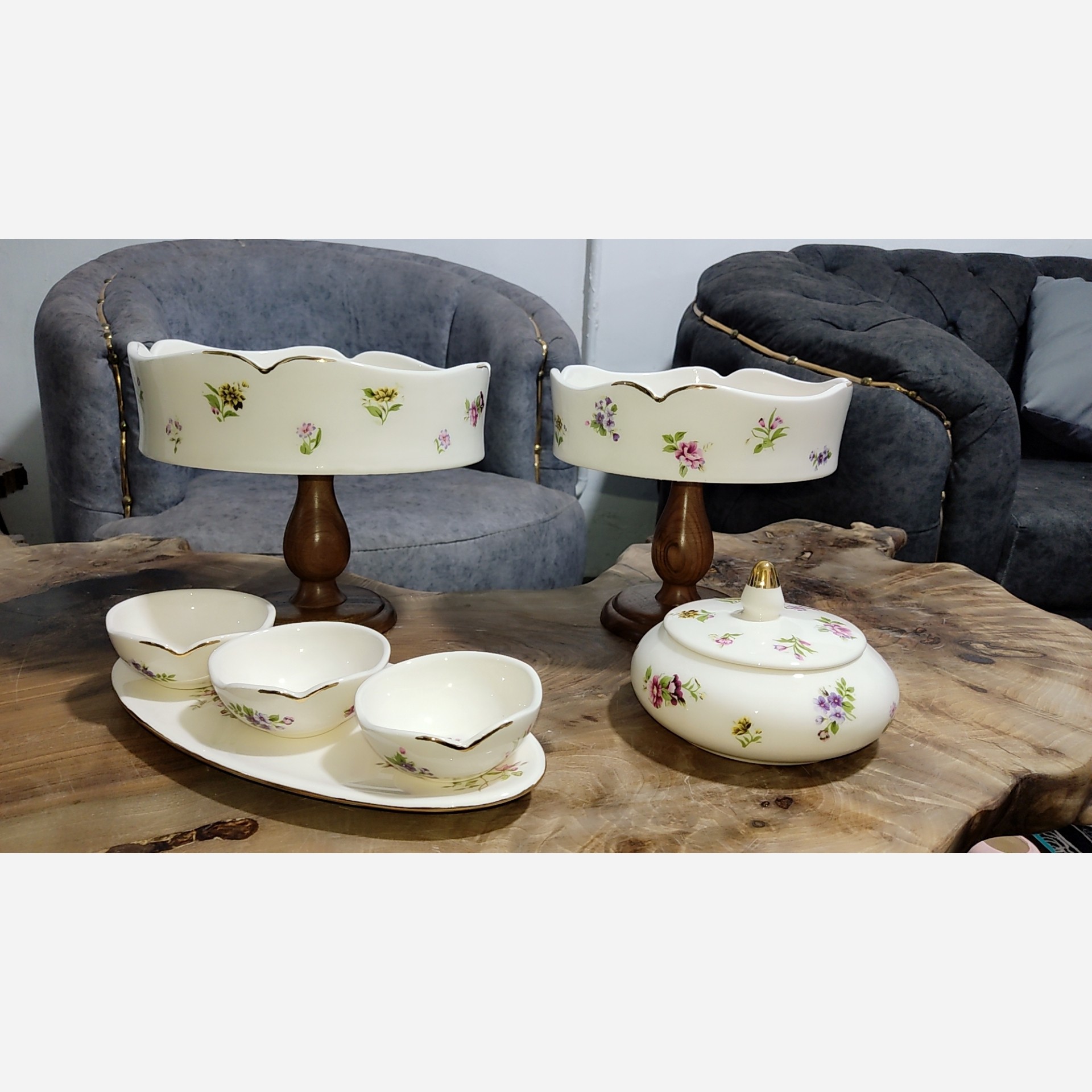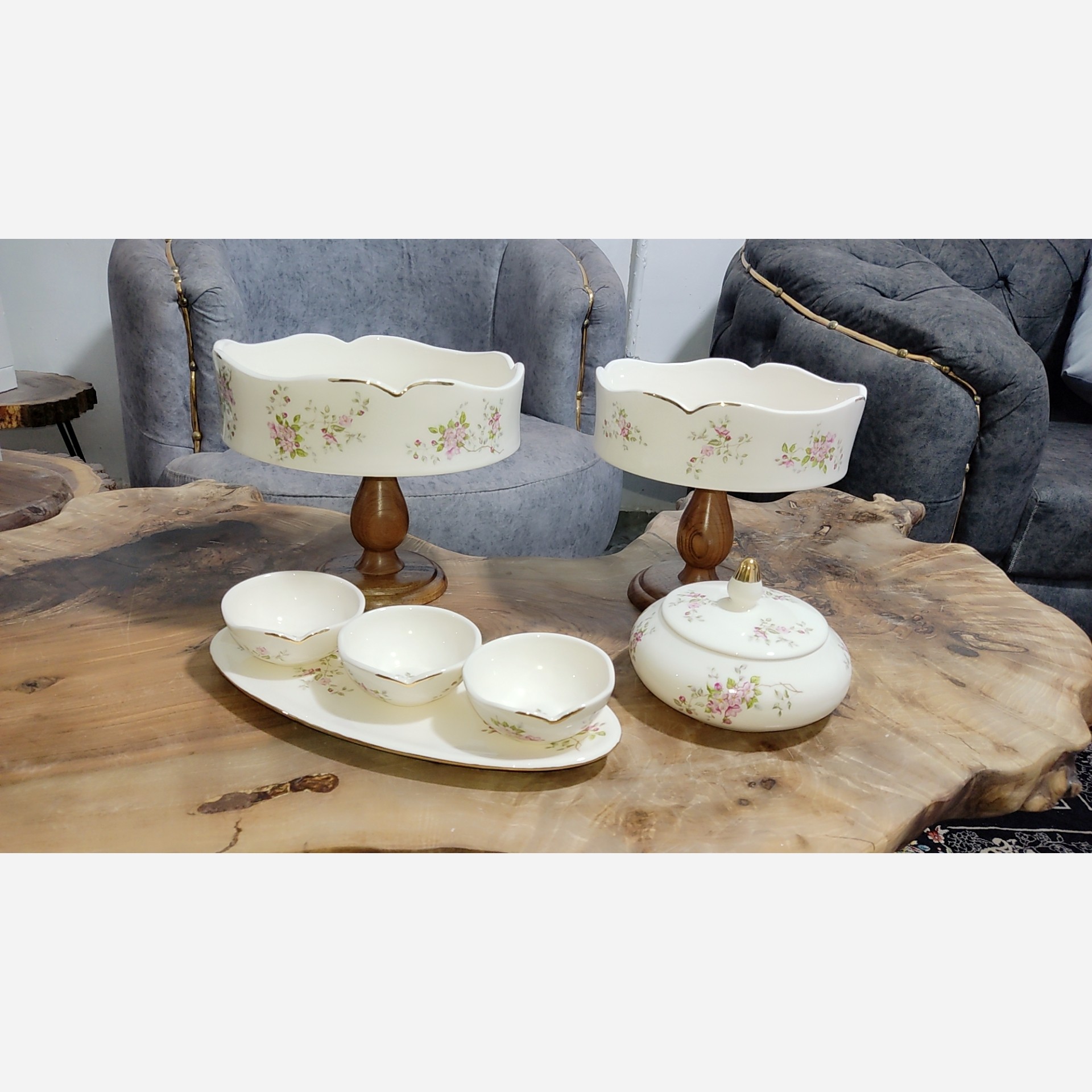 ست سرامیکی پذیرایی شاخه طلایی،میوه خوری سرامیکی شاخه طلایی مبلمونسرا مدل 277054