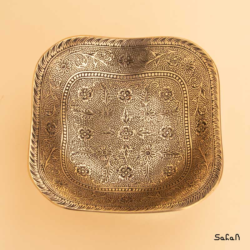 آجیل خوری برنجی طلایی پایه دار مربع مبلمونسرا مدل 264950
