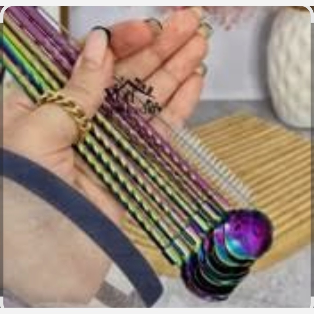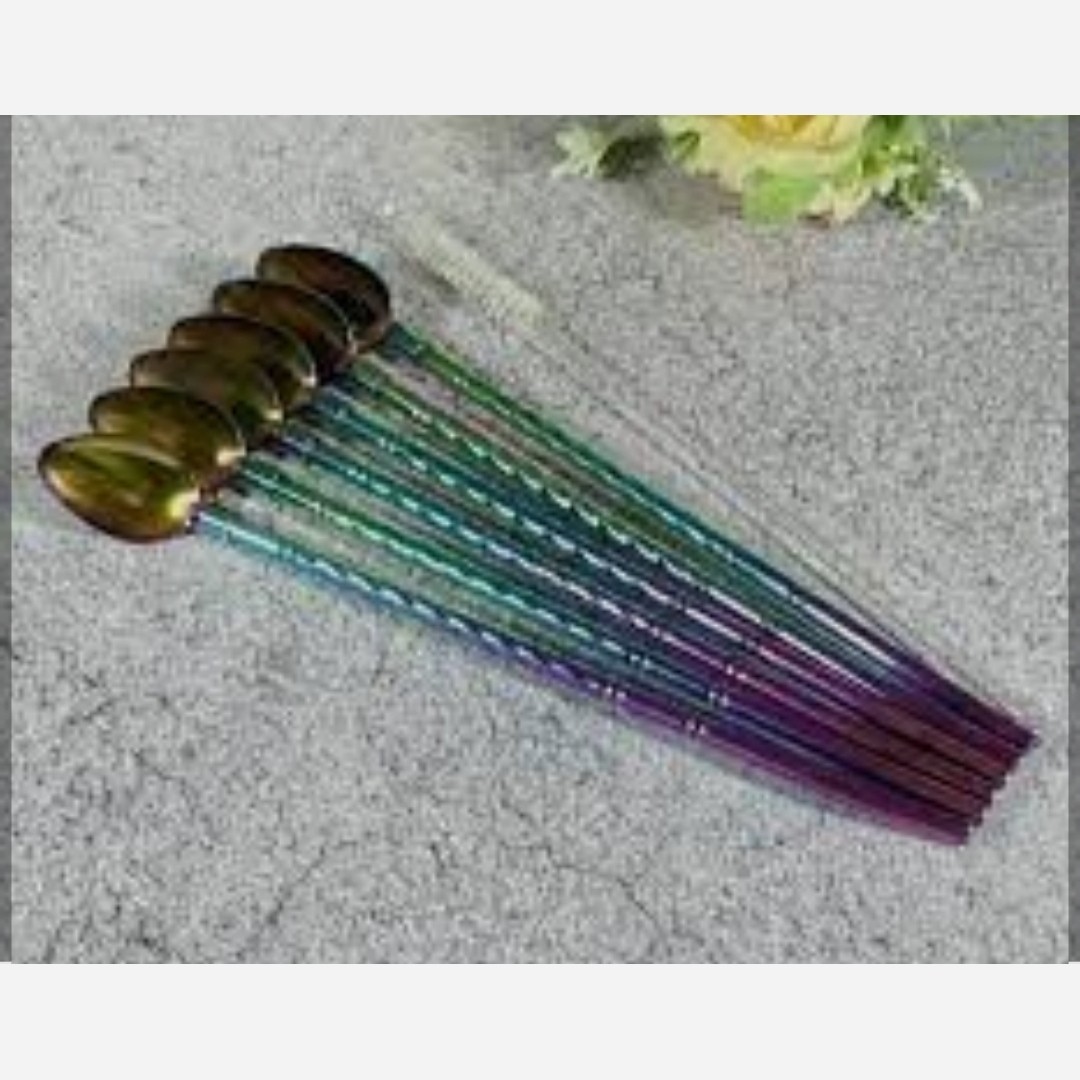 قاشق نی دار طرح گل ?اربرند درجه یک SY ?ازجنس استیل بسیارباکیفیت وضدزنگ ?طلایی،سیلور،هولوگرامی ?پک6عددی همراه با فرچه برای شستشوینی ?طرح پیچی ?استیل آهنربانگیر🧲∆
