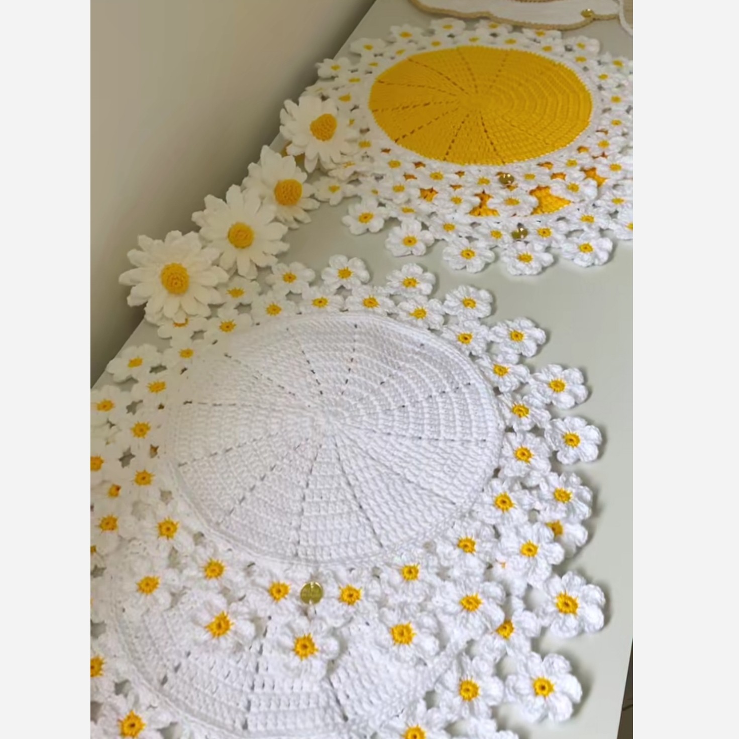 زیر لیوانی و رومیزی بافتنی طرح بابونه مبلمونسرا مدل 298582