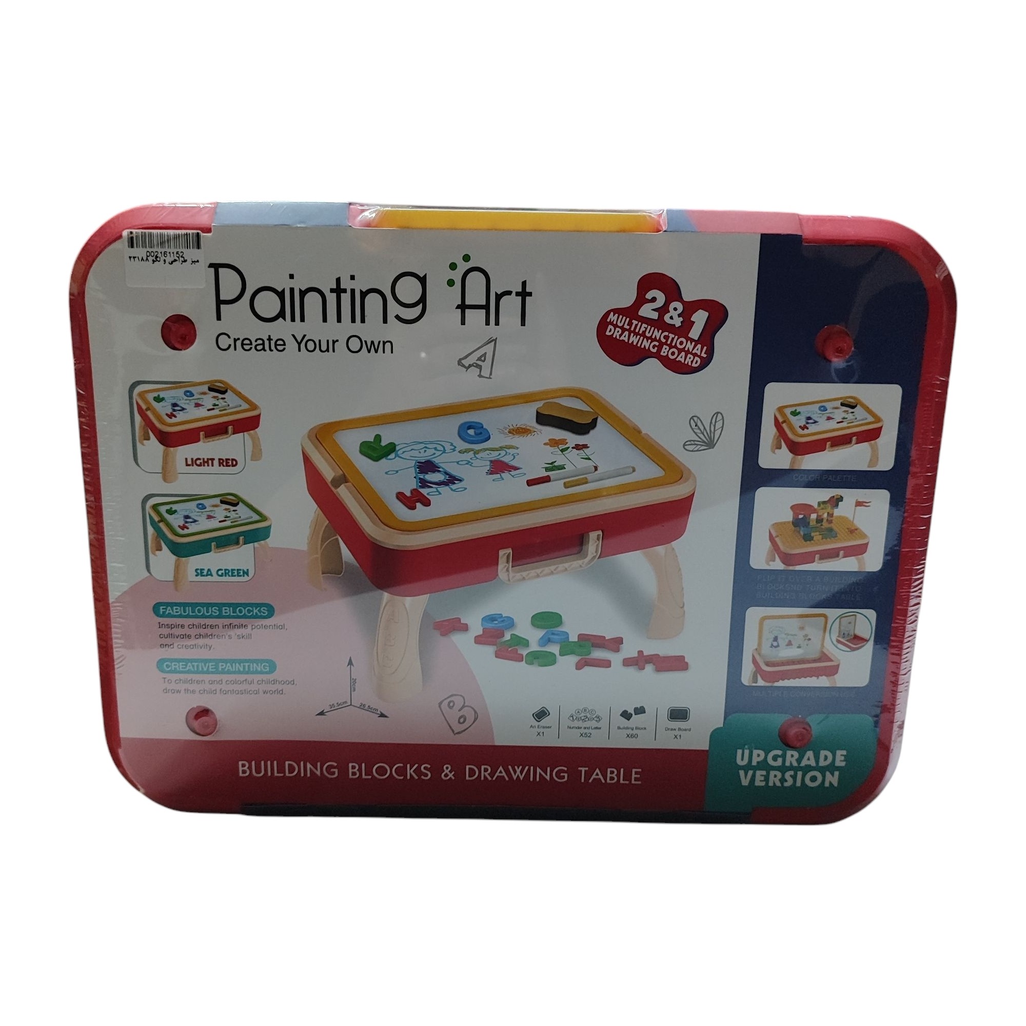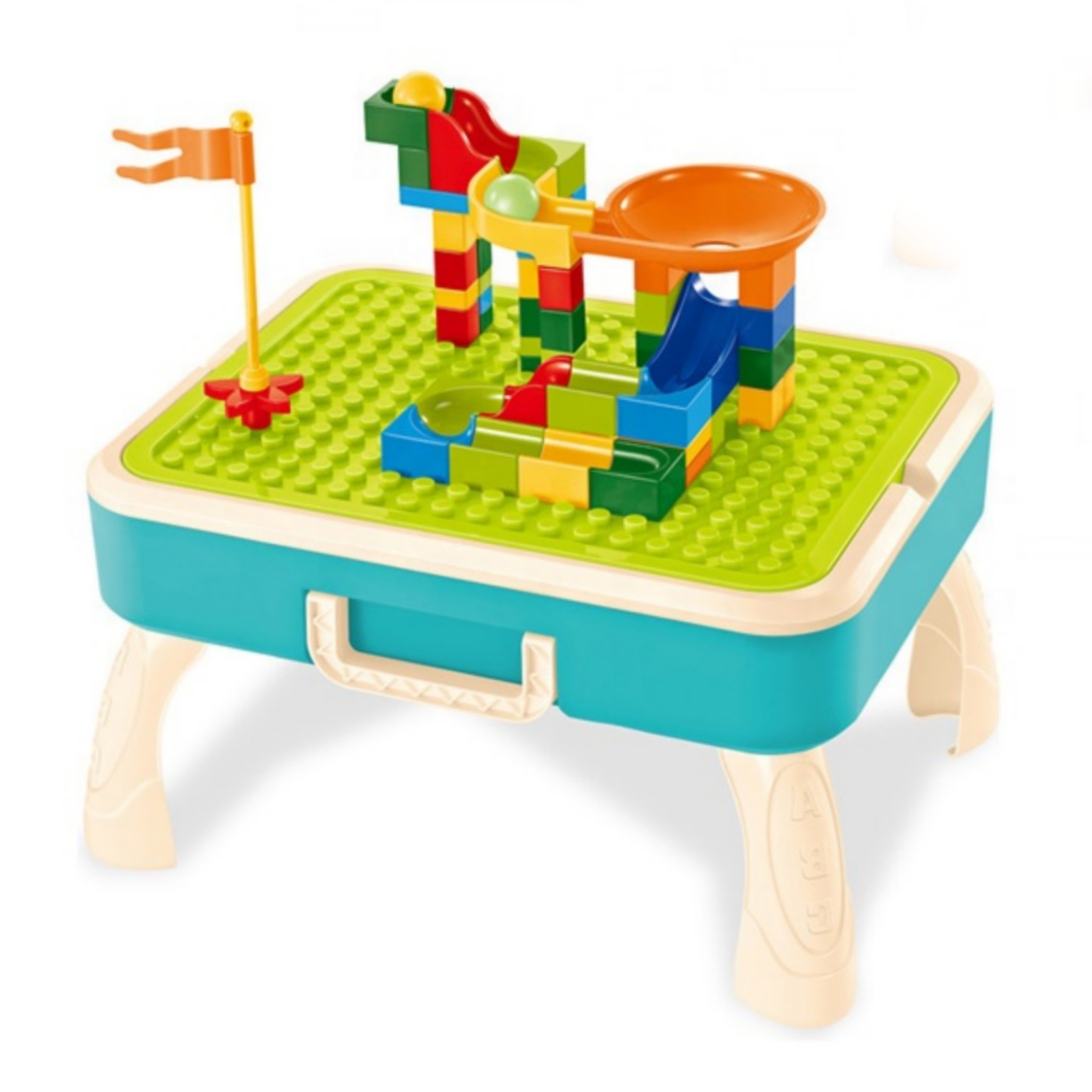 میز طراحی و لگو دارای صفحه لگو و قطعات لگو توپ و سرسره دارای شابلون و اعداد طراحی بسیار با کیفیت دسته دار و قابل حمل اسباب بازی کاربردی و جمع و جور برای کودک در حین مسافرت قابل استفاده به عنوان میز تحریر کوچک زمینی در رنگهای آبی و قرمز موجود است.