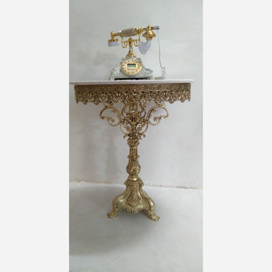 میز تلفن تک پایه جنس آلیاژ آلومینیوم آبکاری برنج ارتفاع 70 صفحه 40در 40
