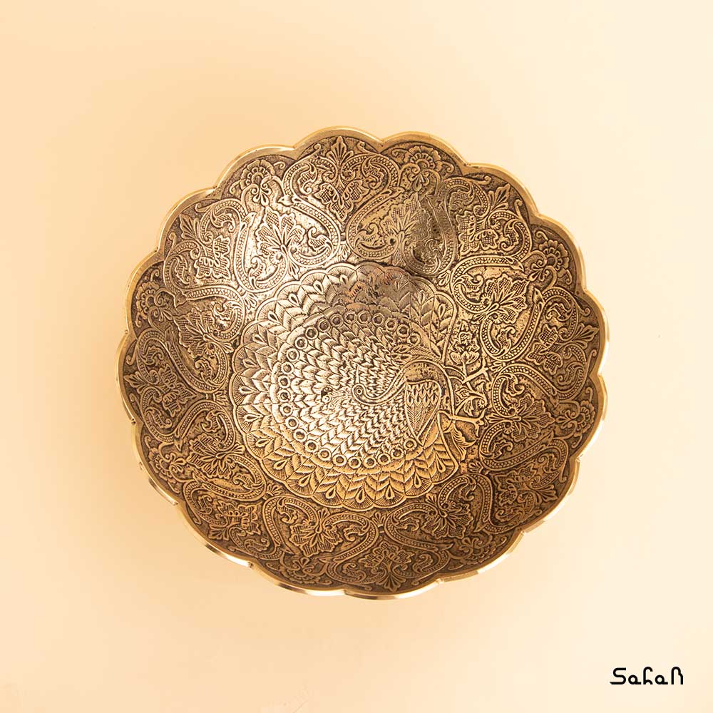 آجیل خوری دورو برنجی طلایی طاووس مبلمونسرا مدل 265436