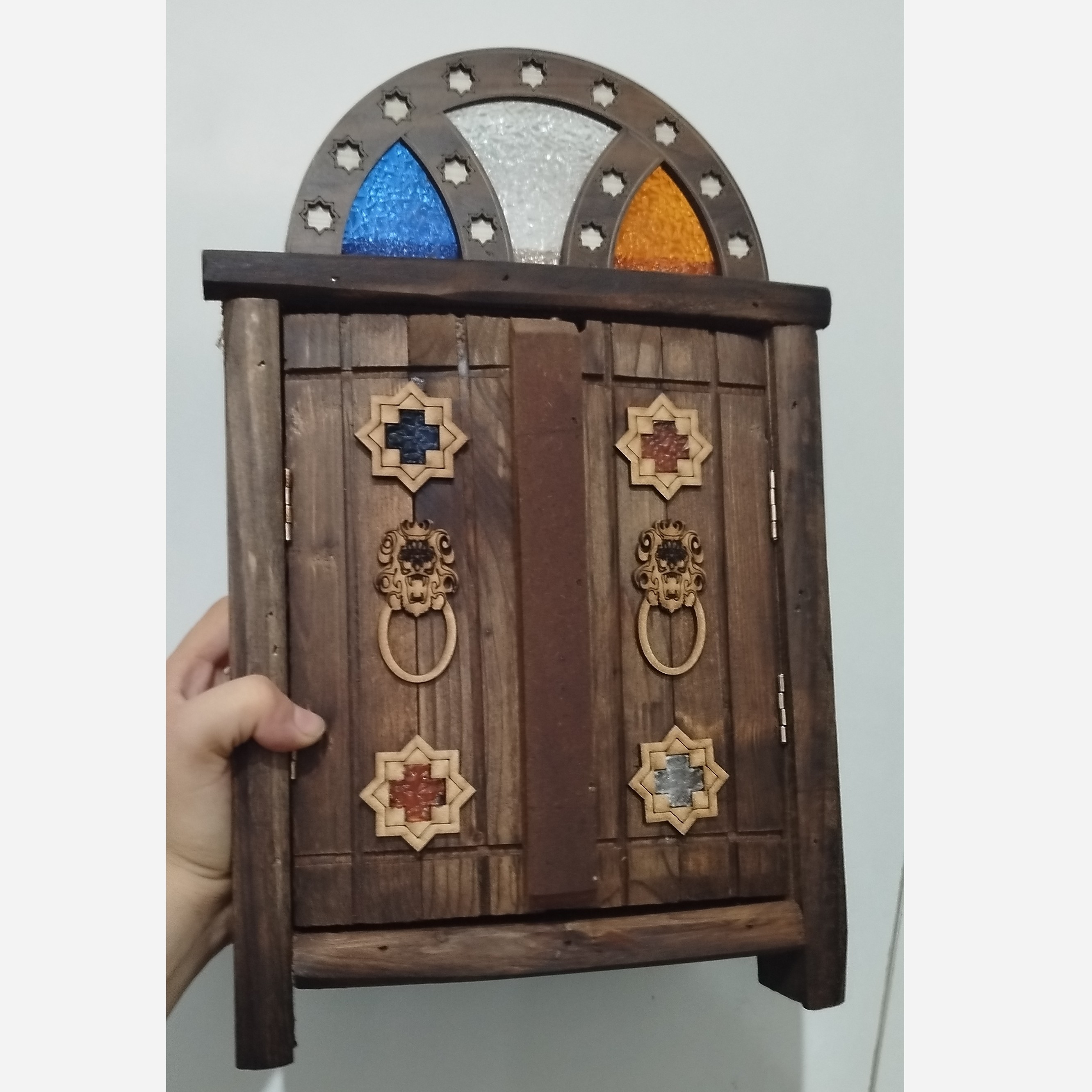 جاکلیدی دیواری چوبی طرح در سنتی و شیک اینه دار مبلمونسرا مدل 263066