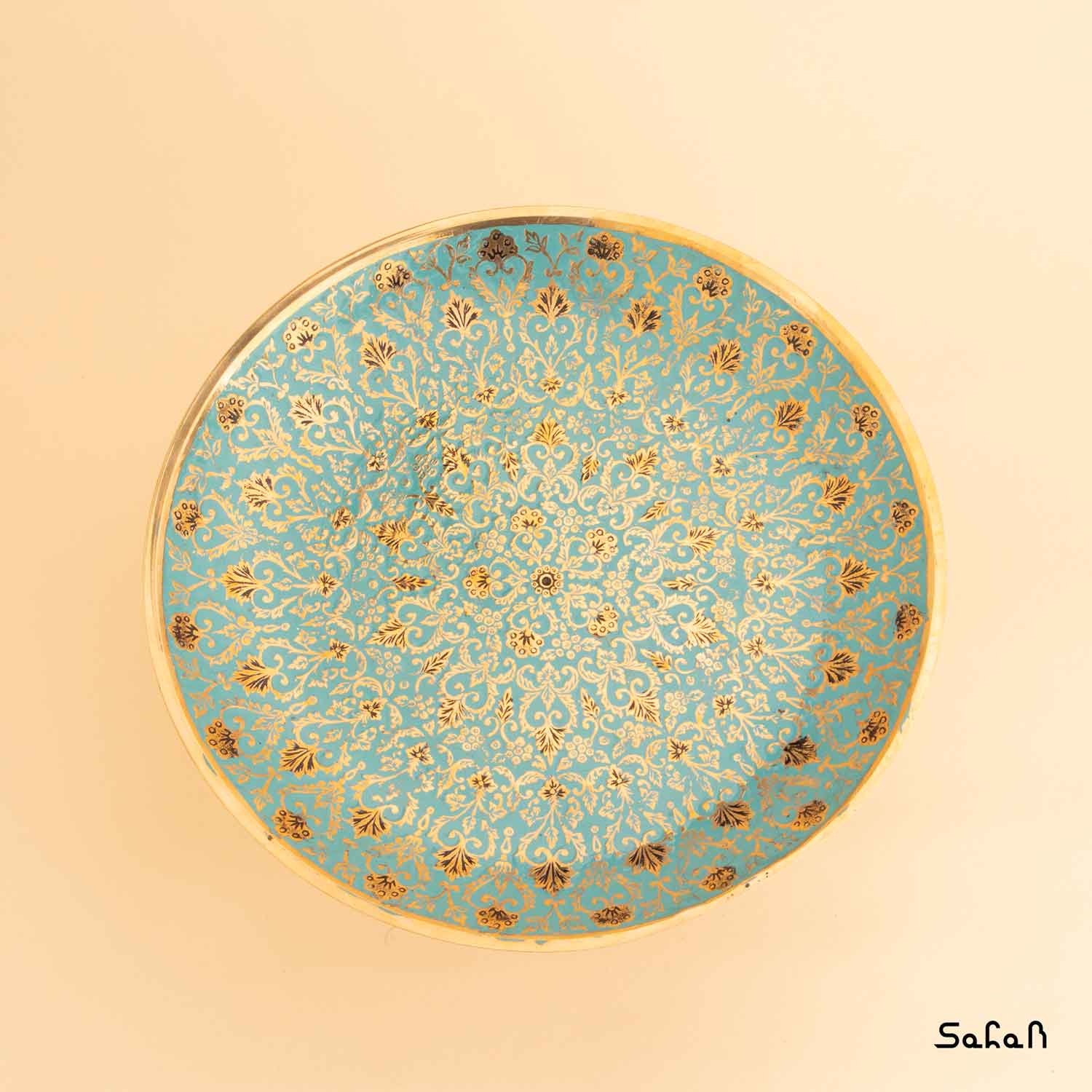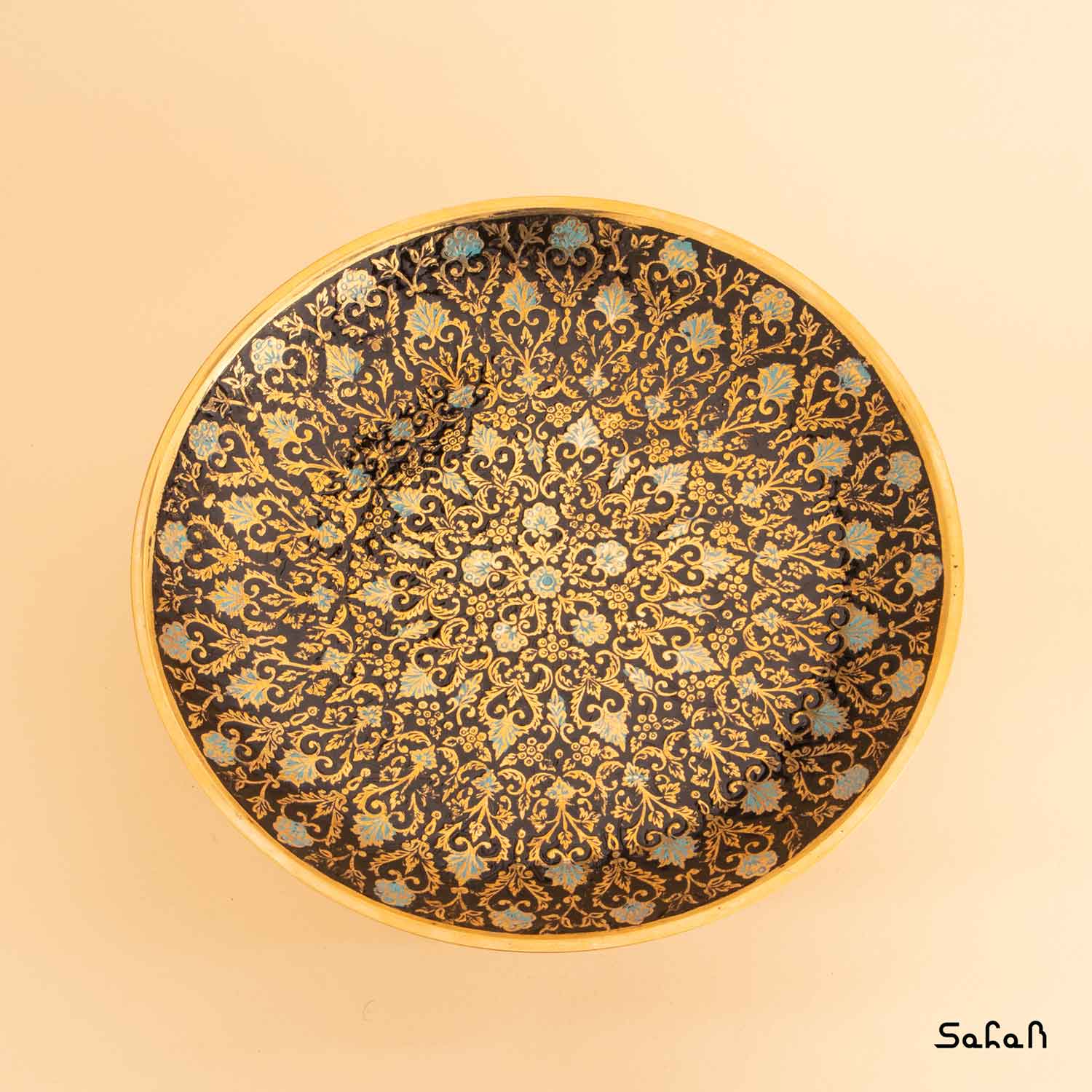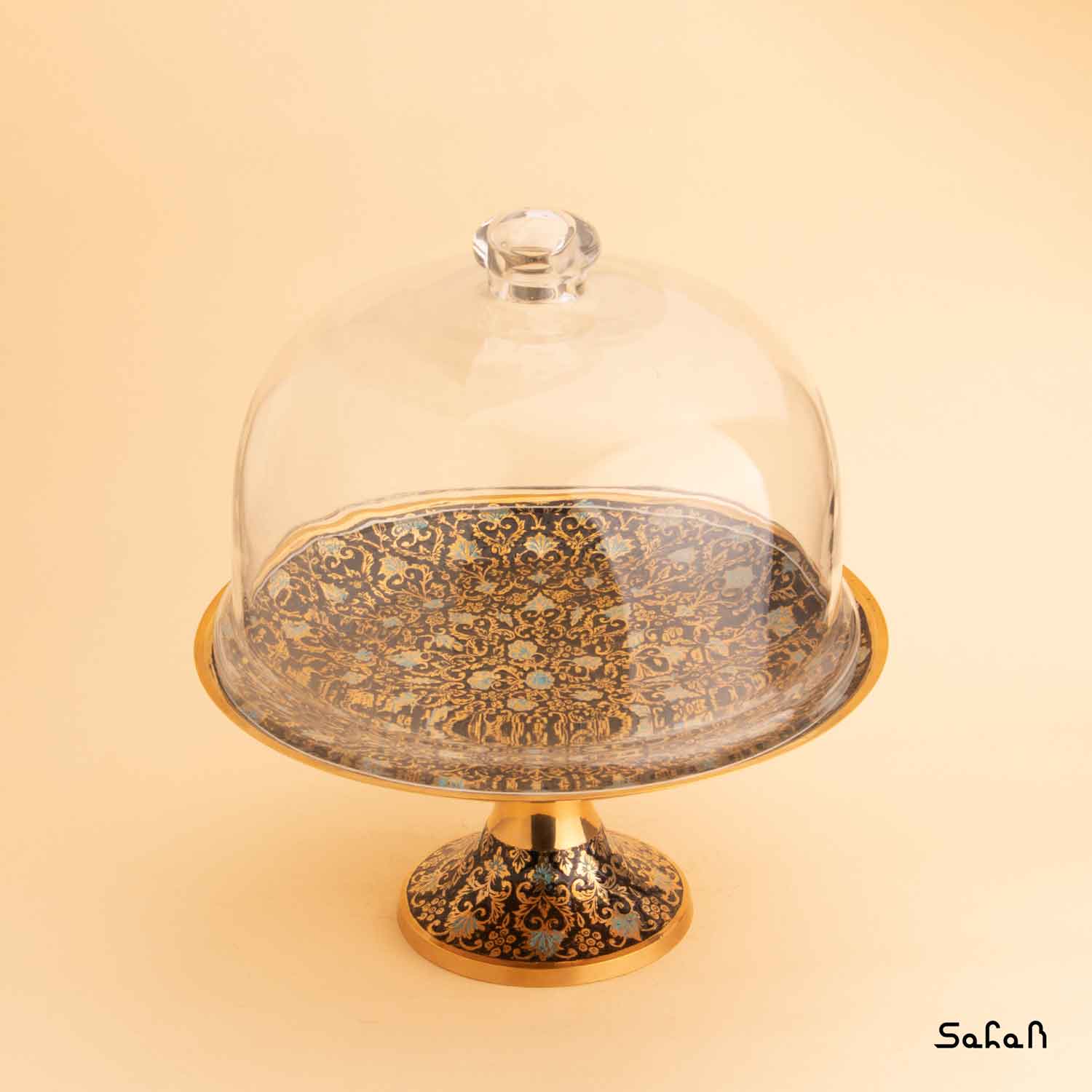 کیک خوری برنجی میناکاری پایه دار طرح تاج مبلمونسرا مدل 277339