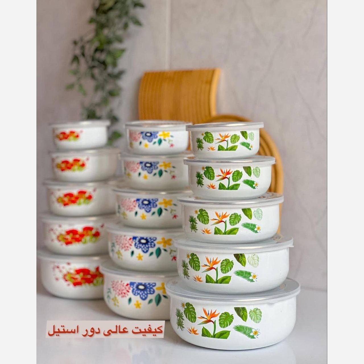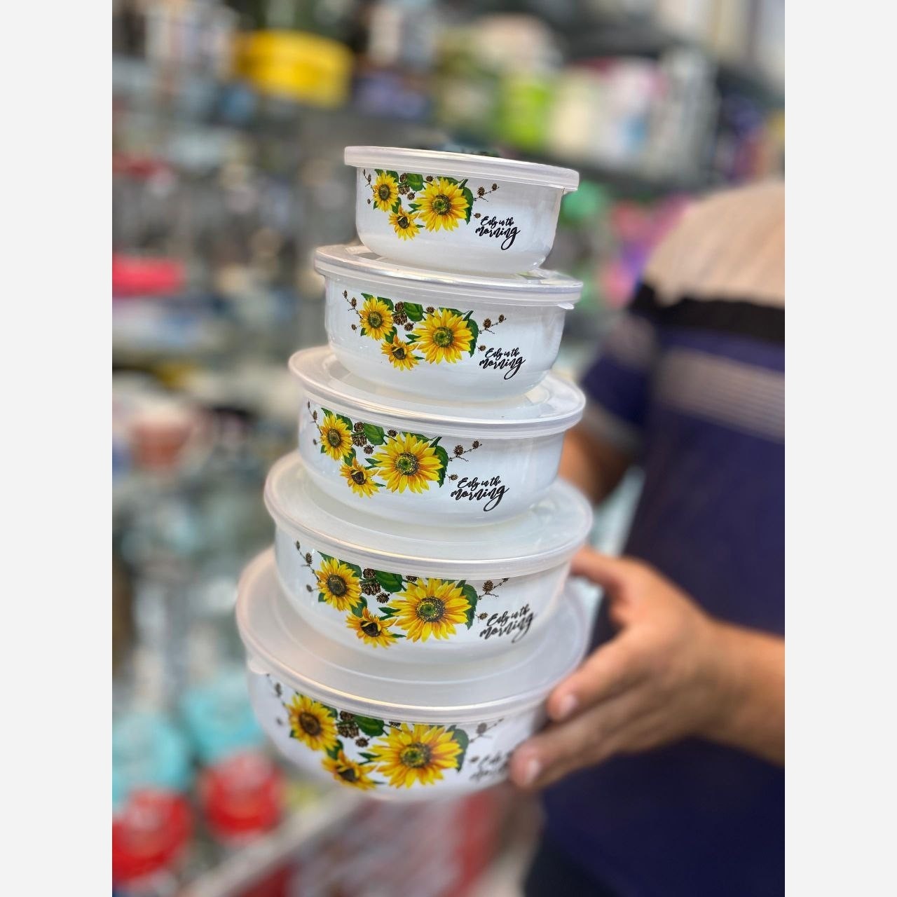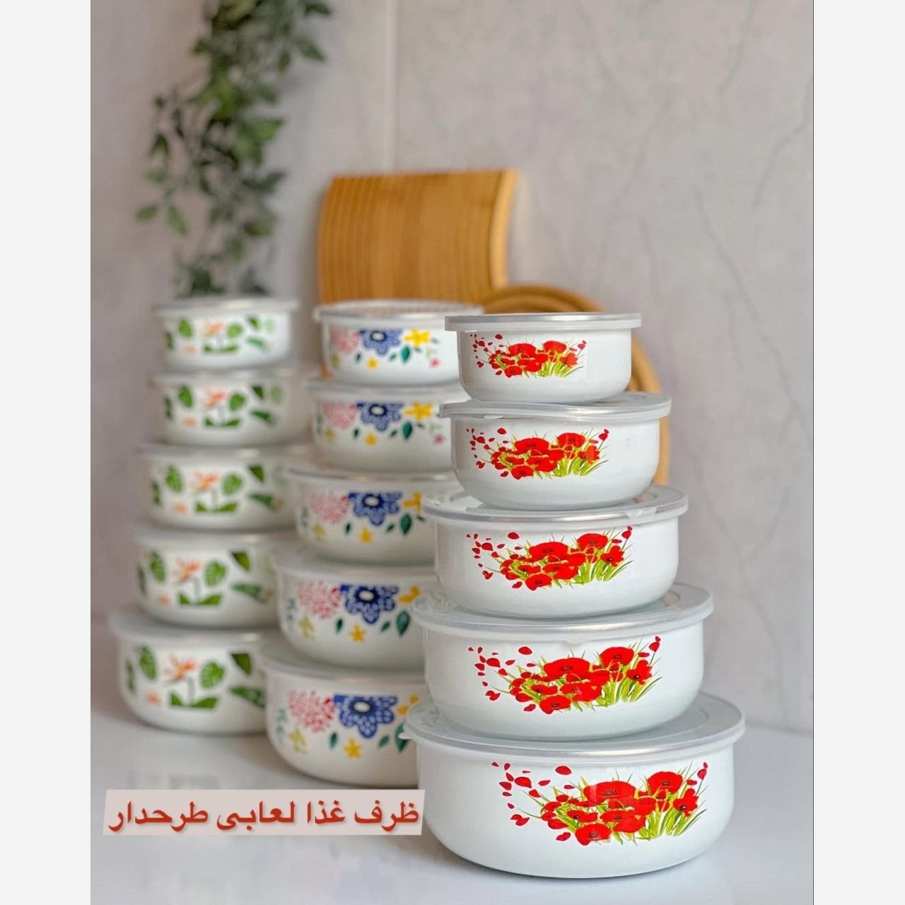 ظرف غذا لعابی و نگهدارنده پنج تایی محصول وارداتی چین دور لبه استیل درب کیپ درسایزهای 10-12-14-6-18