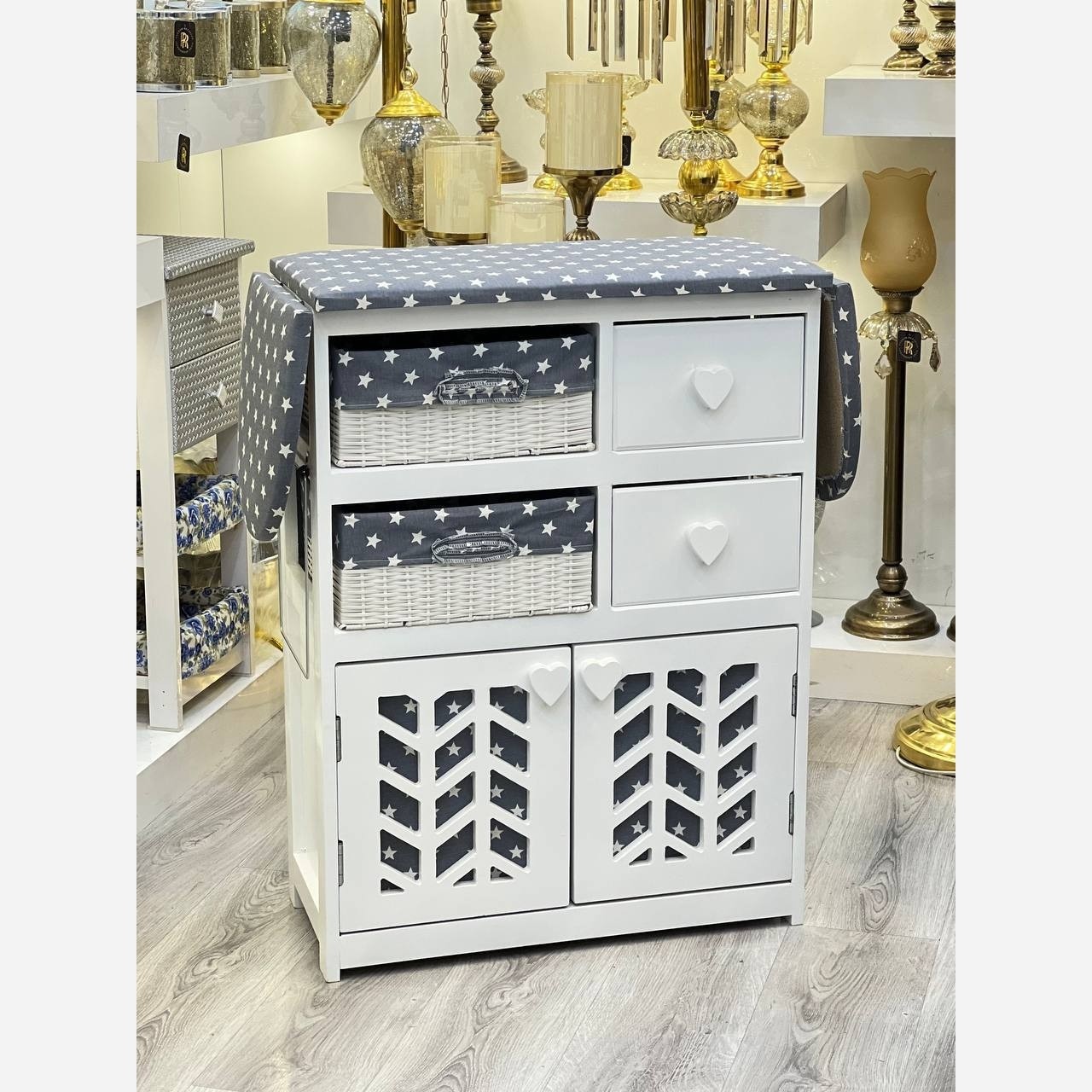 🥰🥰🥰🥰🥰 #میزاتو میز اتو و جای چرخ خیاطی تبلتی ….. درب مگنتی …. تمام ام دی اف… رنگبندی : سفید طوسی طول:61 عرض:27 ارتفاع:84