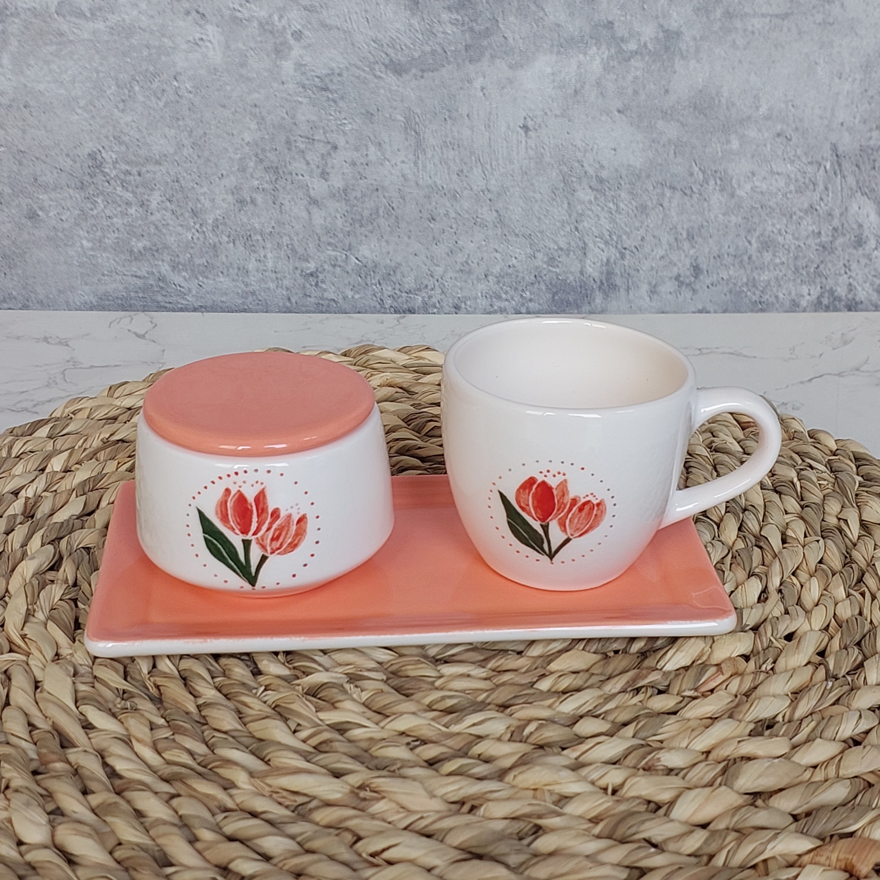 ست چایخوری سرامیکی تکنفره دستساز طرح گل لاله مبلمونسرا مدل 273632