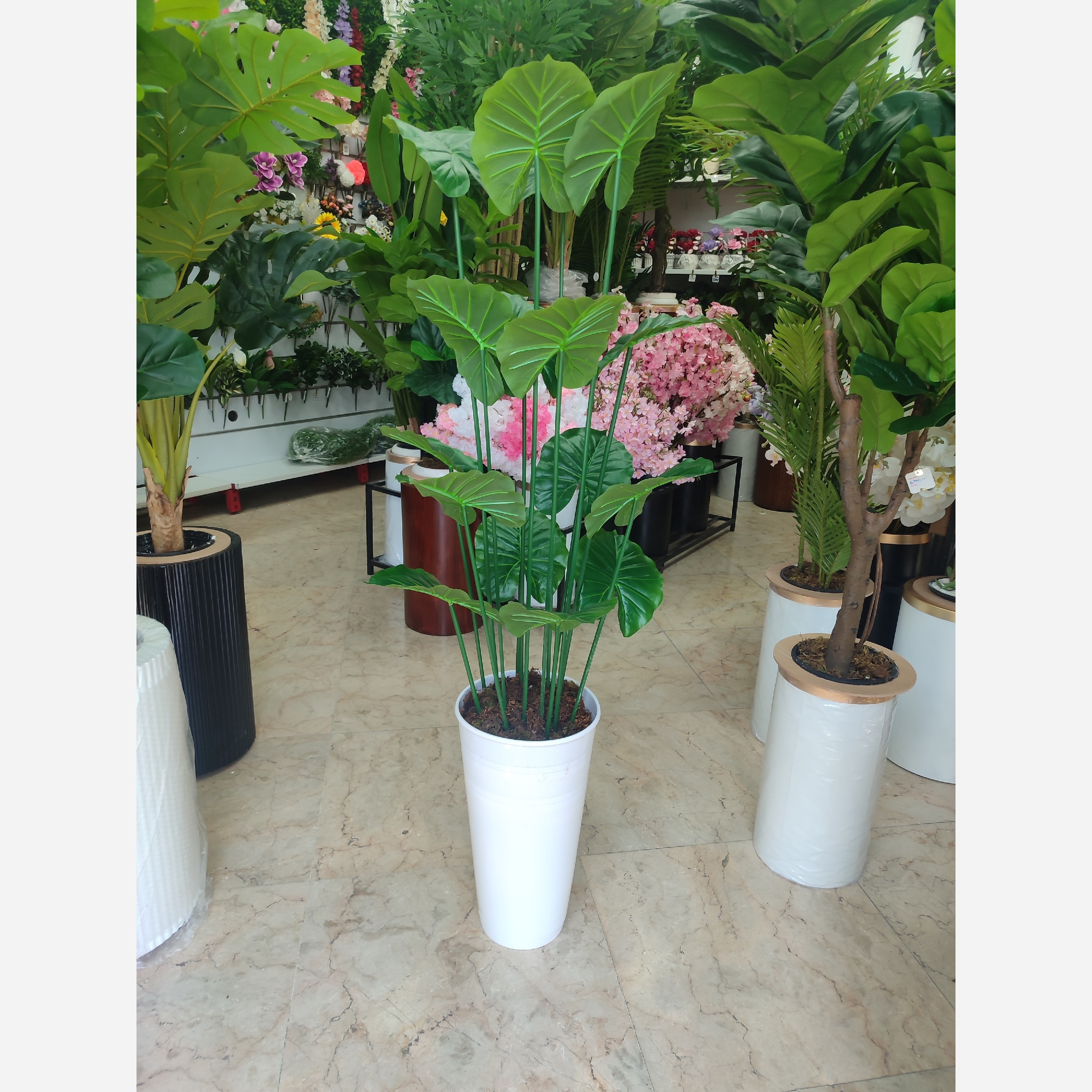 گل بابا ادم درجه 1وارداتی لمسی قابل شستشو ارتفاع 180cm قابل مونتاژ با گلدان سفید و مشکی با نوار طلایی فوق العاده با کیفیت ارسال از تهران به سراسر کشور ارسال رایگان