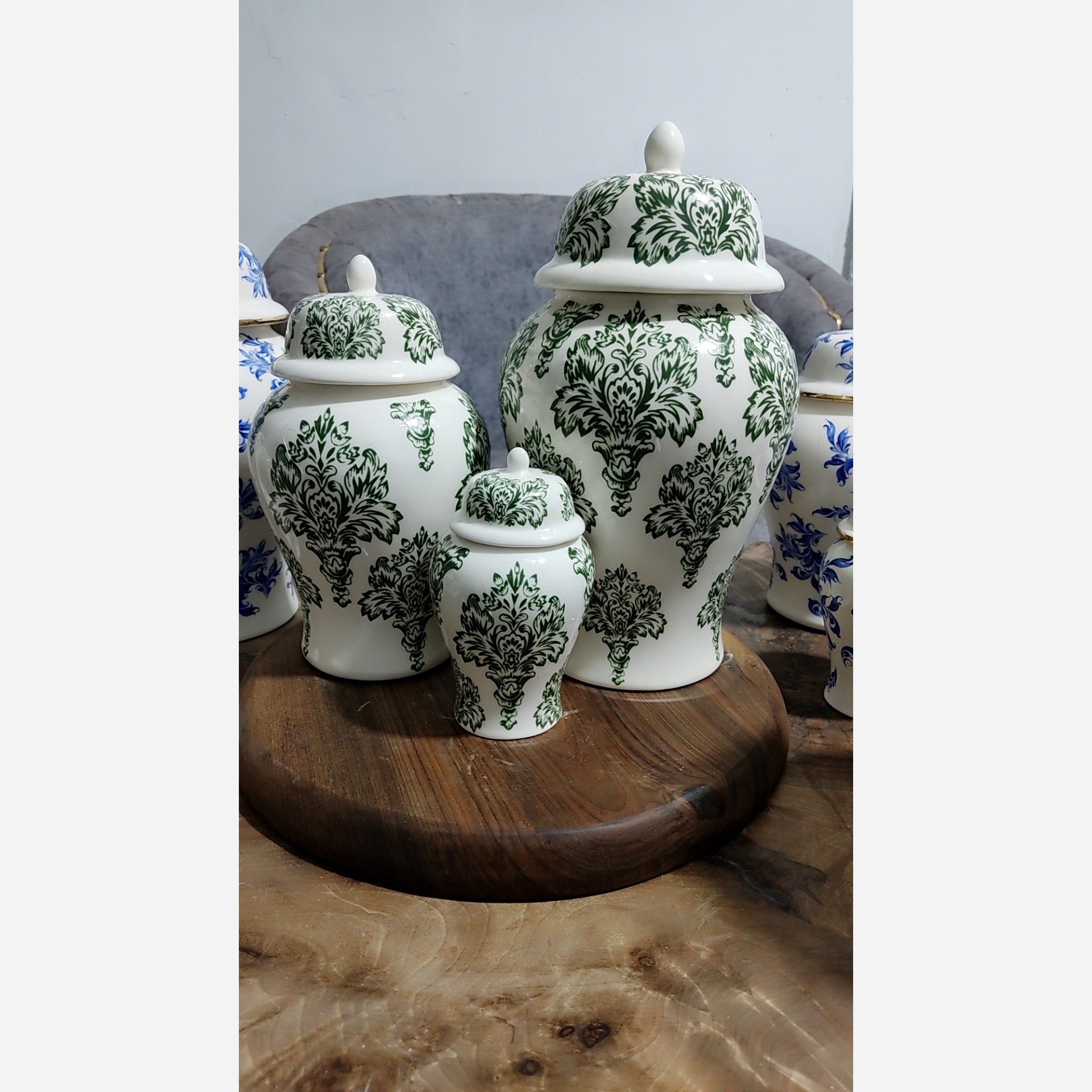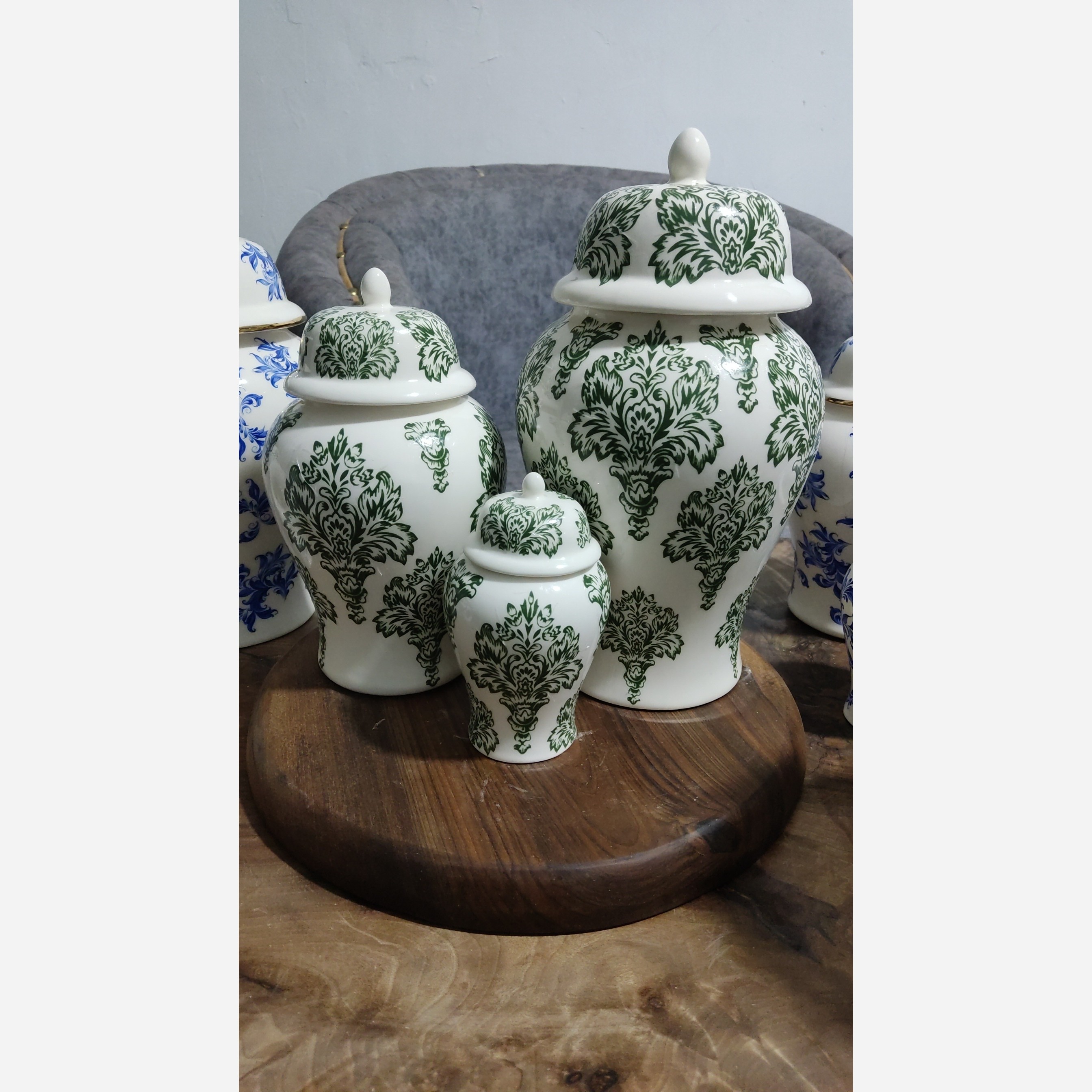 ،ست جینجرجار سرامیکی شاه صنم سبز،ست جینجرجار سرامیکی سبز،جینجرجار گل سبز، گل ابی مبلمونسرا مدل 278476