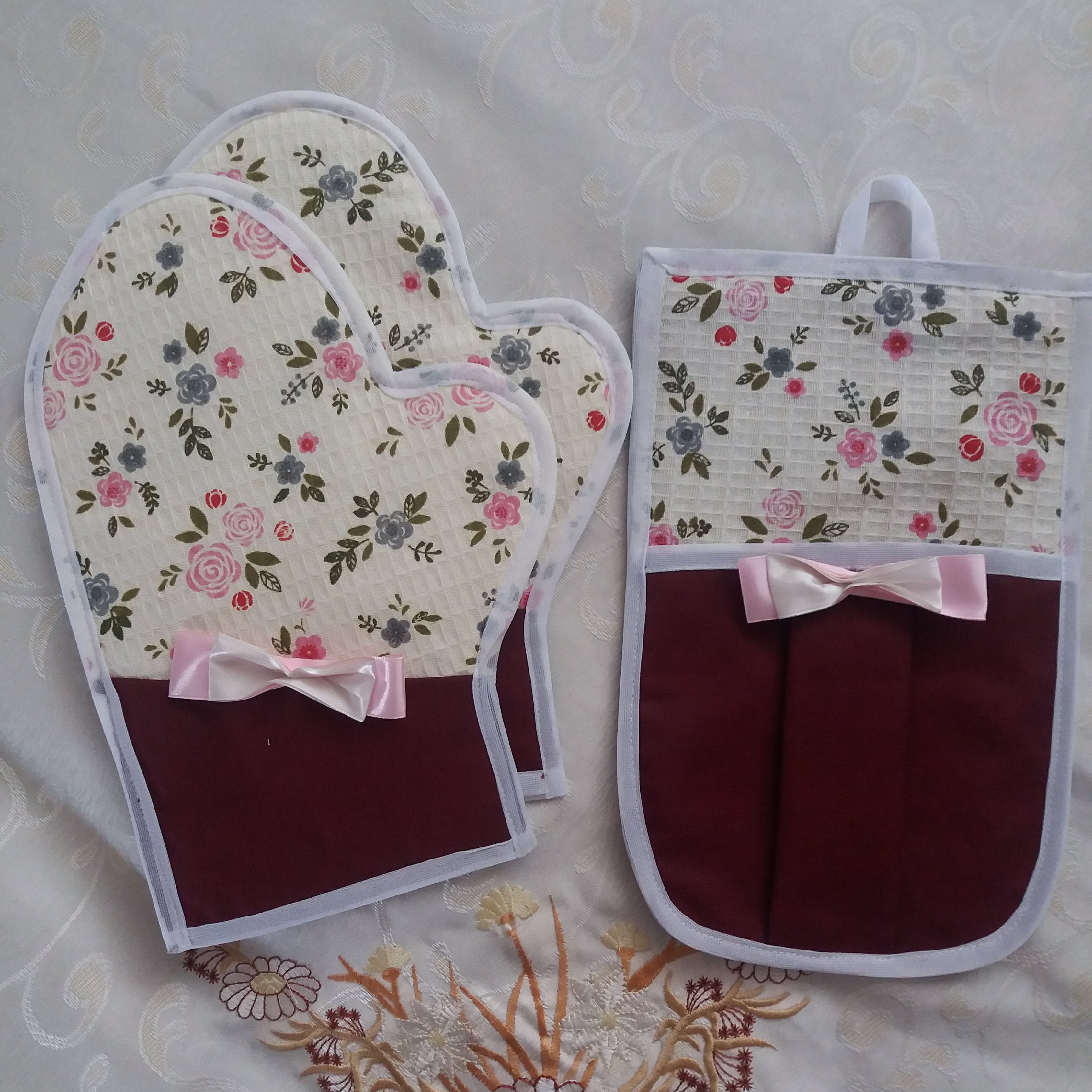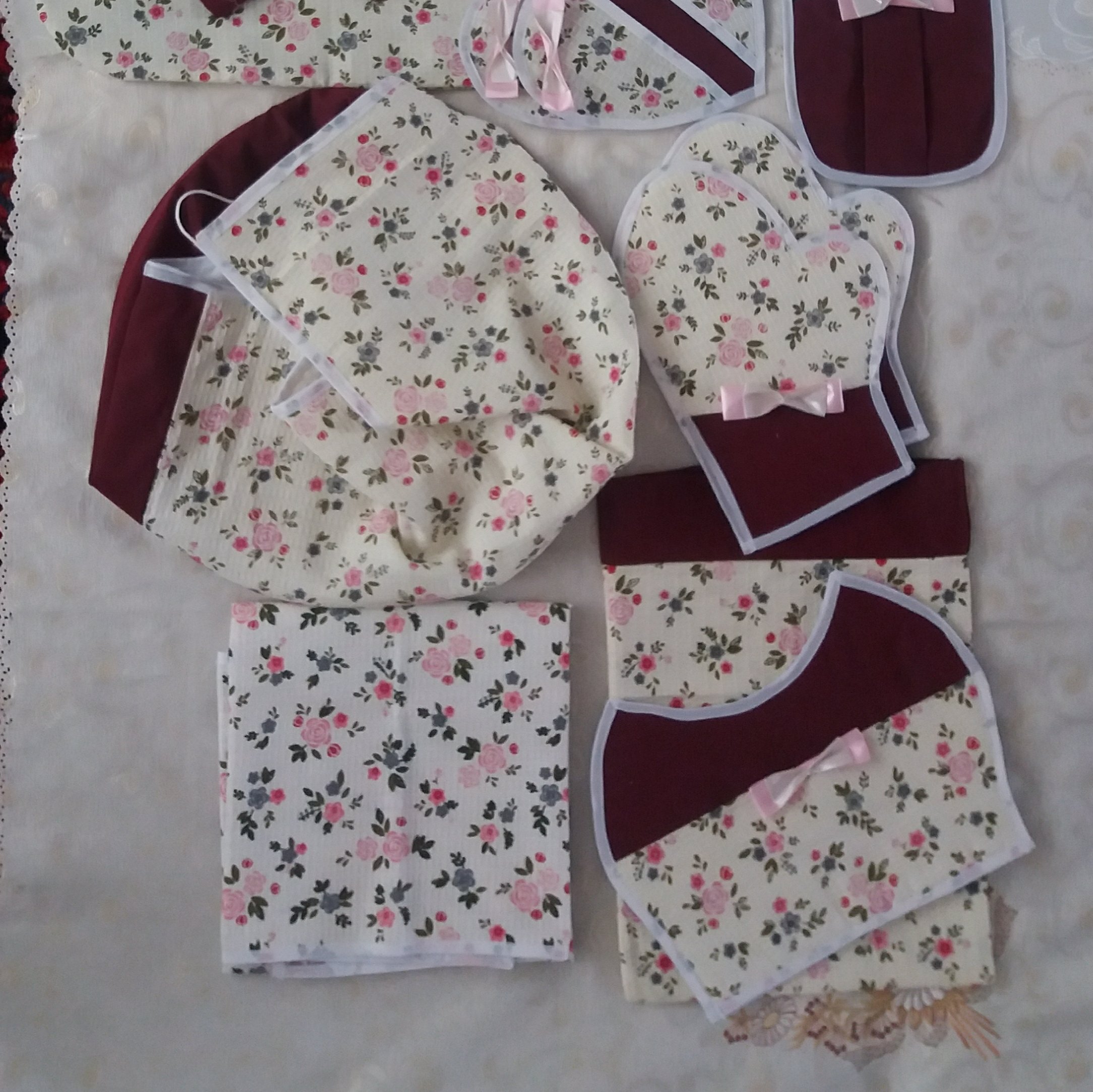پیشبند ، نمگیر، دستکش، سبد همهکاره ، دستگیره قابلمه ، کاور قابلمه، دستگیره یخچال ، زیر قابلمه ، دمکنی ، کیسه سبزی، کیسه خرید نان، حوله ، دمکنی قوری و "جا کبریتی هدیه"