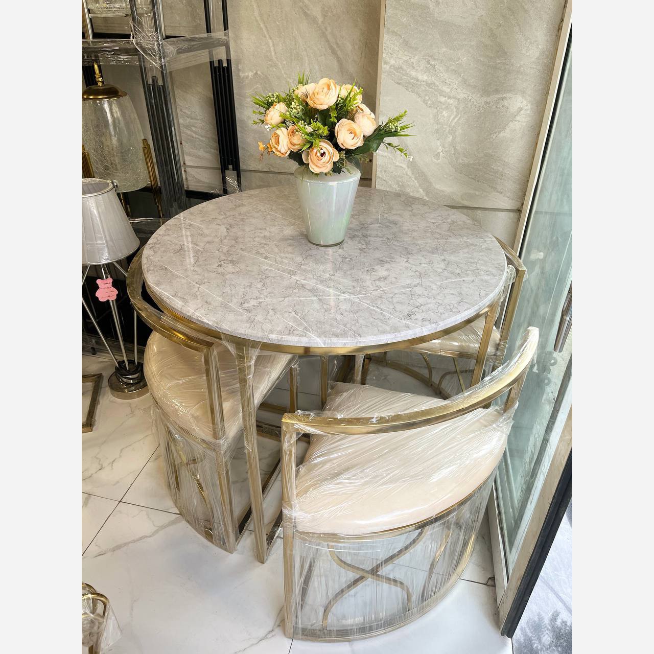 میزغذاخوری میزنهارخوری میزناهارخوری مدل ساعت شنی طلایی گرد مبلمونسرا مدل 216981