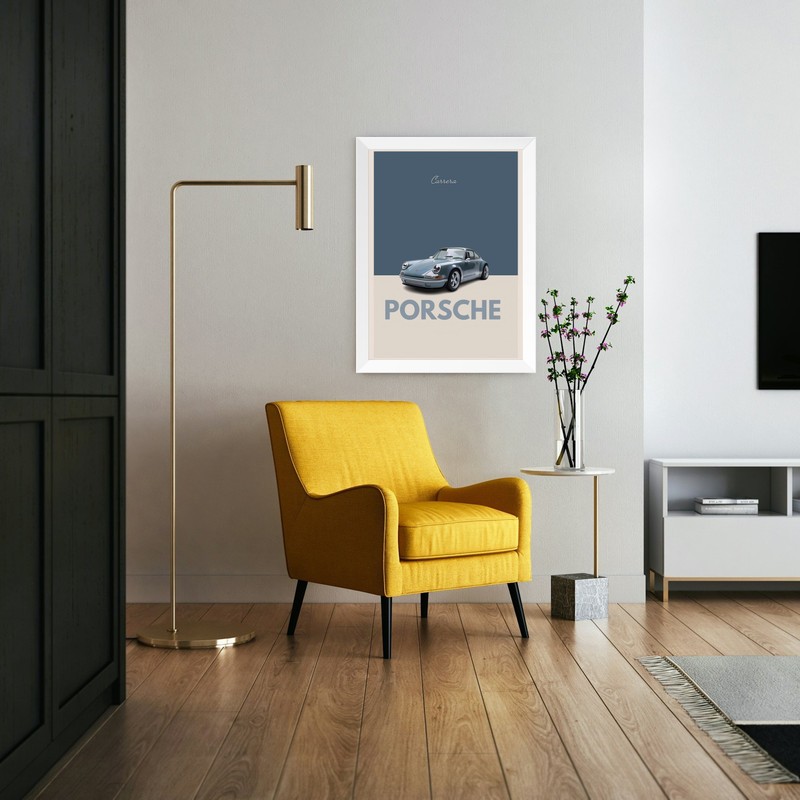تابلو مدل دکوراتیو طرح ماشین پورشه کد 1132 فریم سفید مبلمونسرا مدل 268386