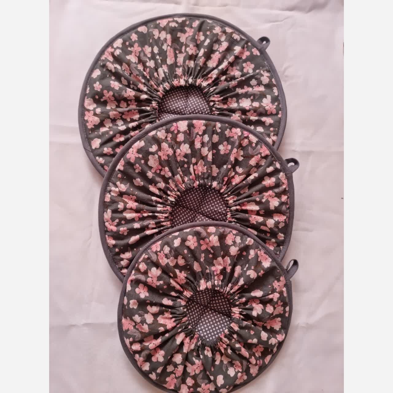 ست دم کنی سه عددی کش دار با پارچه کتان نخ فیلور ایرانی🇮🇷 نوار اریب کتان با پشم شیشه و کش جنس خوب در رنگ بندی پر فروش و شیک قابل اجرا در سایز و رنگبندی دلخواه در دو طرح مختلف طوسی شکوفه و سرمهای گل ریز😍😍