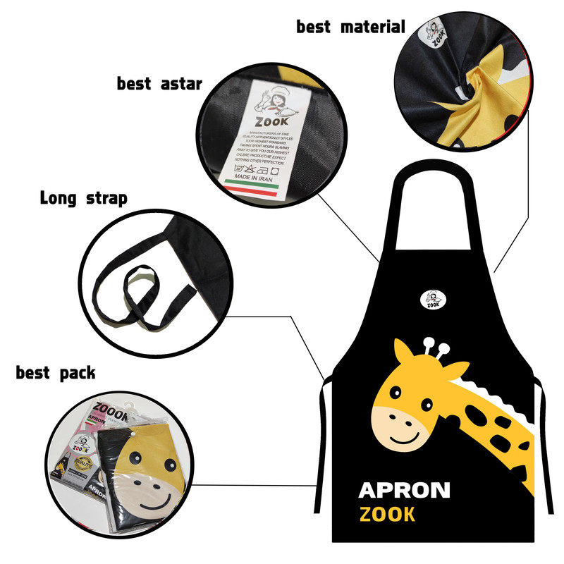 با استفاده از پیشبند بهترین حس را خواهید داشت چون لذت آشپزی و کار در منزل را به شما هدیه میدهد . وقتی این پیشبند را در خانه و آشپزخانه به گردن می اویزید هم بسیار شیک و جذاب خواهید بود و هم الگوی خوبی برای همسر و فرزندانتون.اکثر پیشبندهای موجود در بازار یا آبگیر نیستند و موقع شستن ظرف آب روی پاها میریزد و زمین را خیس میکند و یا اگر آب را جذب میکند از آستر خوبی استفاده نشده و باعث خیس شدن لباسها میشود و دیگر اینکه از بندهایی برای پشت گردن استفاده شده که باعث اذیت شدن گردن میشود و شما احساس بدی خواهید داشت و گاها این نوع پیشبندها بسیار سنگین هستند و در استفاده دراز مدت خیلی خسته کننده اند. اما برند ZOOOK با تولید پیشبندهایی با چاپ های چشم نواز و استفاده از جنس مخمل بسیار سبک که کاملا آبگیر بوده و پشت آن از نوعی آستر ضد آب استفاده شده که باعث میشود با خیس شدن لباس هایتان در هنگام استفاده خداحافظی کنید و حس خوبی را تجربه کنید . اگر بدنبال یک پیشبند شیک .متفاوت . سبک. راحت با رنگ ثابت و کاملا قابل شستشو هستید حتما از محصولات ZOOOK استفاده کنید و شیک بودن حتی در آشپزخانه را به خودتون هدیه بدهید . این پیشبند برای تمام سنین و سایزها مناسب است. مشخصات فنی محصول: ** مشخصات ** ابعاد: 73x52 سانتیمتر وزن: 70 گرم سایر توضیحات: دارای بسته بندی قلابدار و قابل باز و بست شدن با دکمه رنگ ثابت و کاملا قابل شستشو دارای 2 بند بلند قابل گره زدن در پشت دارای بند گردنی بسیار لطیف دارای آستر ضد آب