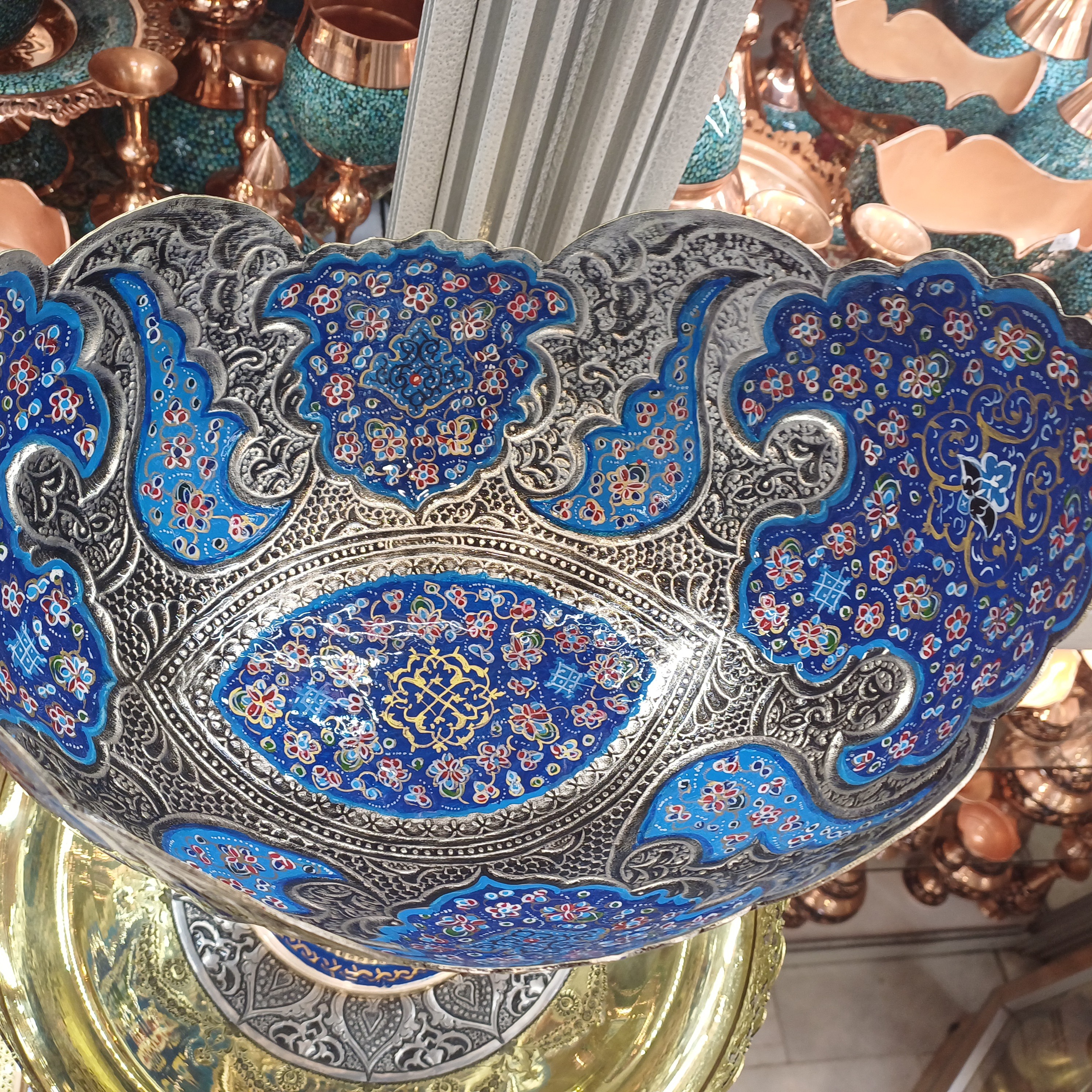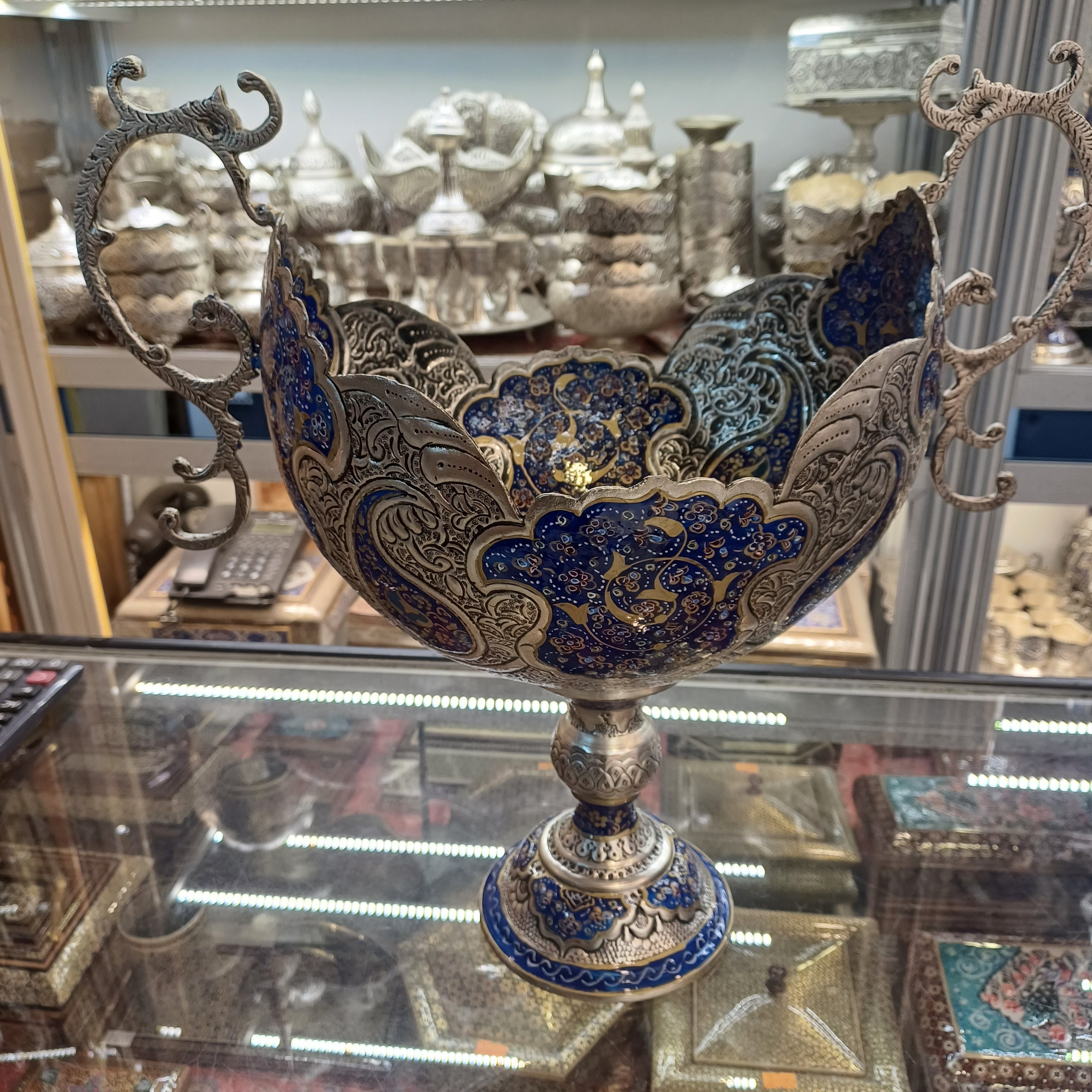 کشکول پایه دار قلمزنی و مینیاتور با روکش آب نقره مبلمونسرا مدل 275874