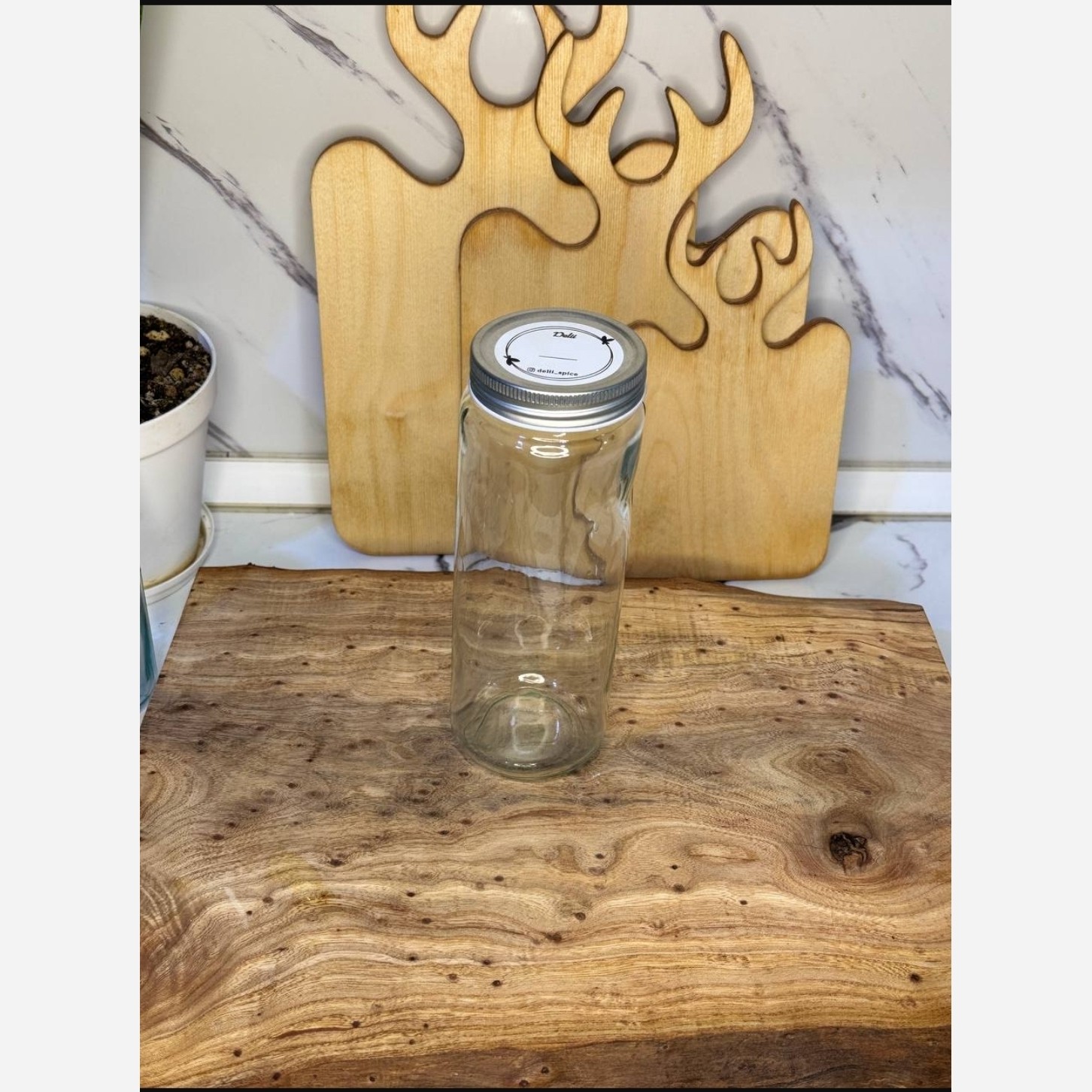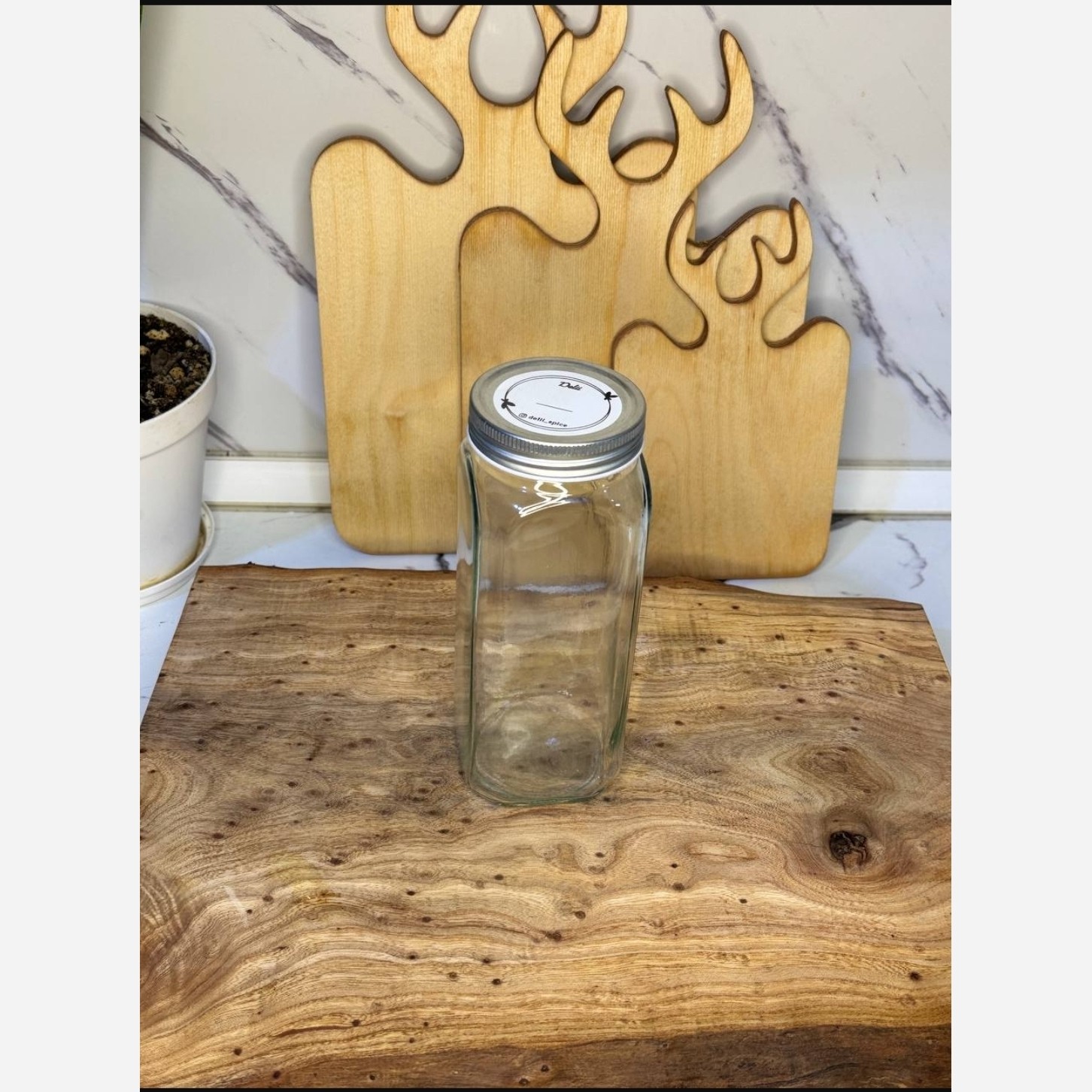 بانکه جا حبوبات از جنس شیشه با درب کانتینری فلزی و لیبل ضد آب در دو طرح مربعی و گرد با قطر 7 سانت و ارتفاع های 7 سانت و 12 سانت و 22 سانت