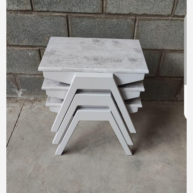 میز عسلی قایقی 3 عددی 3 تا عسلی یک اندازه زیرهم رو جنس mdf وکیوم ابعاد 60×40×45 دارای رنگبندی کمجا و جمع و جور
