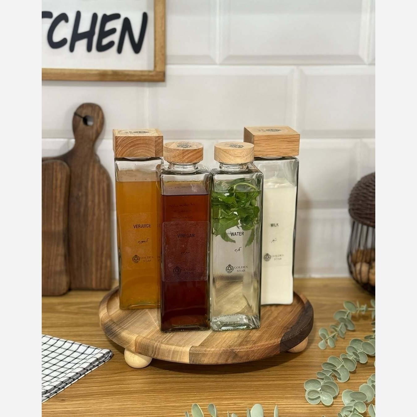 بطری شیشه ای درب مربع چوبی گلدن استار Golden Star مبلمونسرا مدل 294432